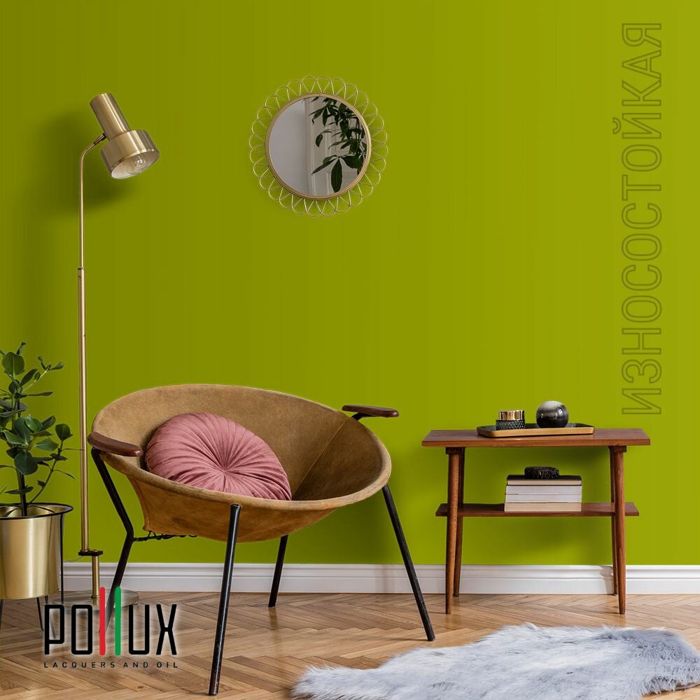 Краска моющаяся интерьерная для стен и потолков, Pollux INTERIOR без запаха, быстросохнущая, акриловая, матовое покрытие, цвет NCS S 0575-G60Y, 1л.