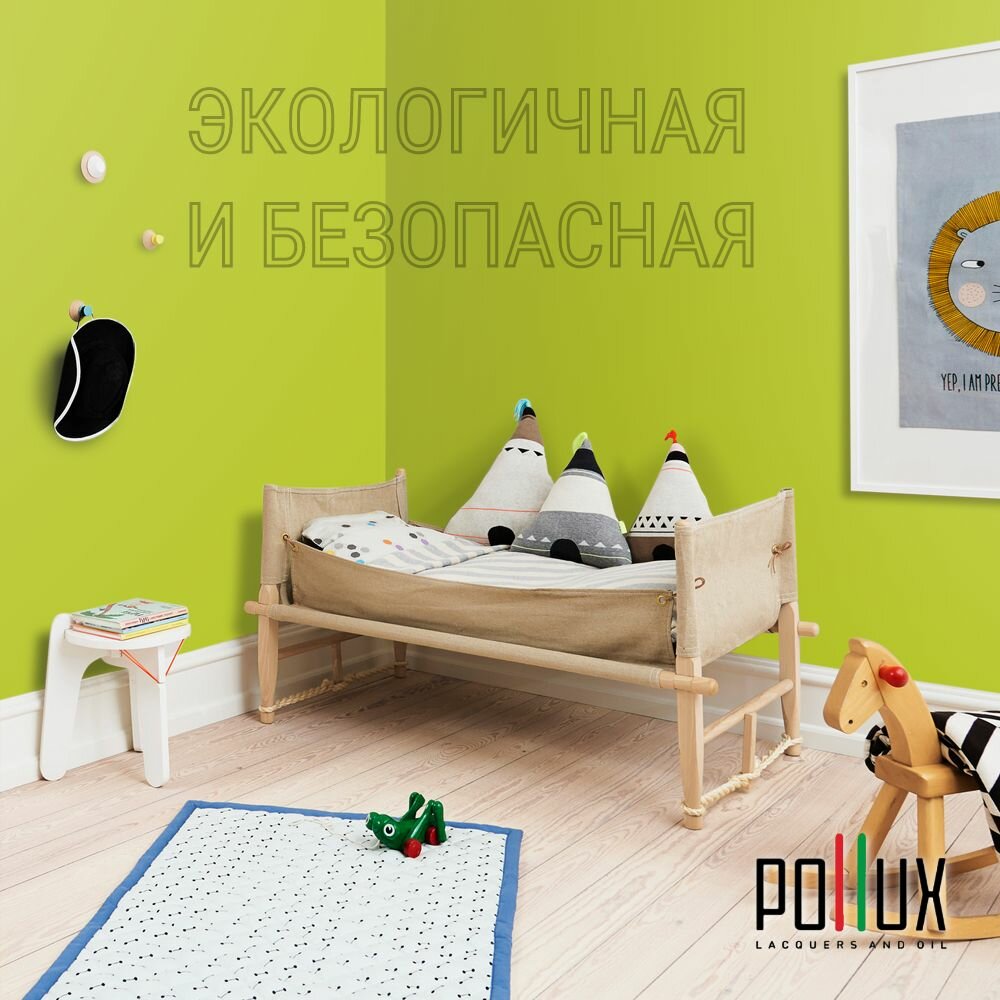 Краска моющаяся интерьерная для стен и потолков, Pollux INTERIOR без запаха, быстросохнущая, акриловая, матовое покрытие, цвет NCS S 4550-G60Y, 1л.