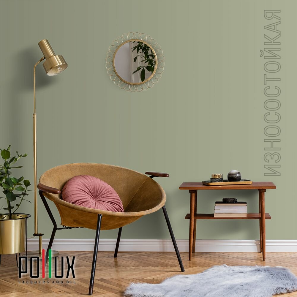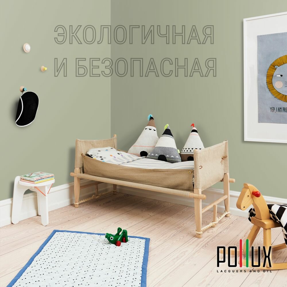 Краска моющаяся интерьерная для стен и потолков, Pollux INTERIOR без запаха, быстросохнущая, акриловая, матовое покрытие, цвет NCS S 4050-G60Y, 1л.