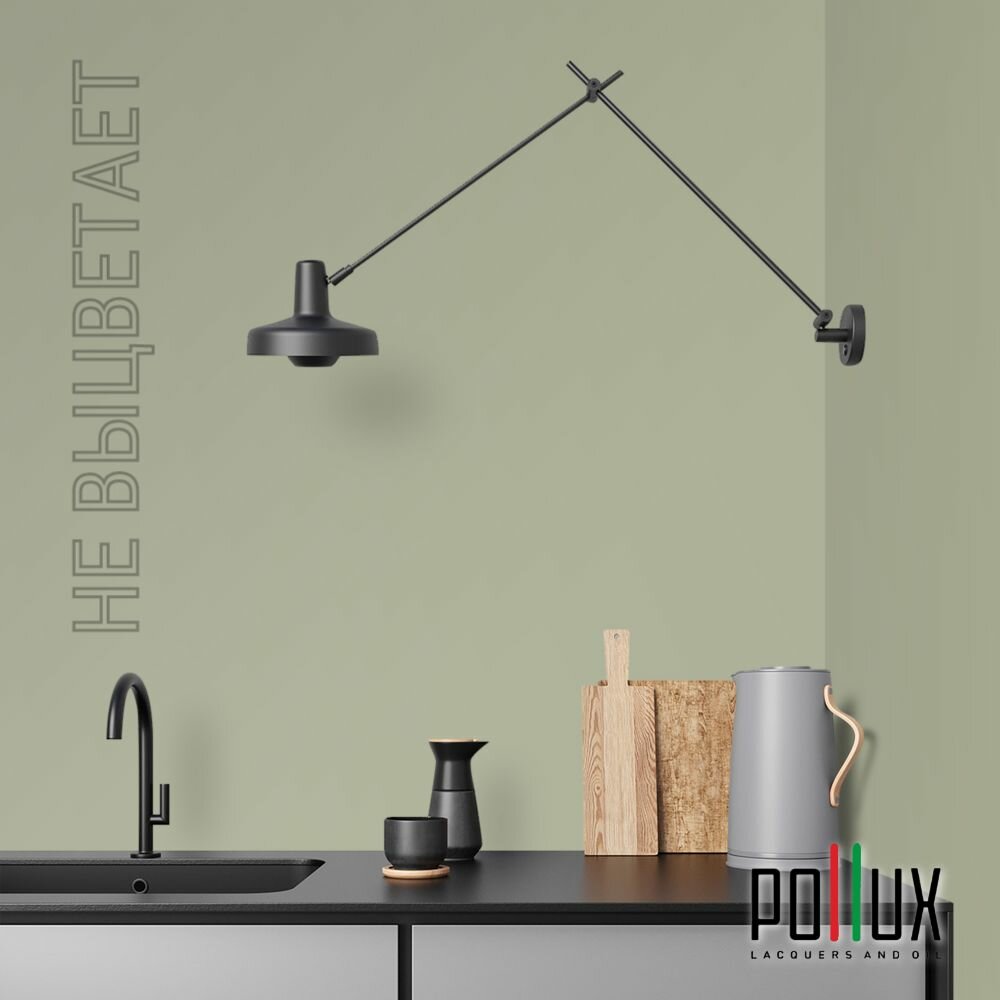 Краска моющаяся интерьерная для стен и потолков, Pollux INTERIOR без запаха, быстросохнущая, акриловая, матовое покрытие, цвет NCS S 5540-G60Y, 1л.