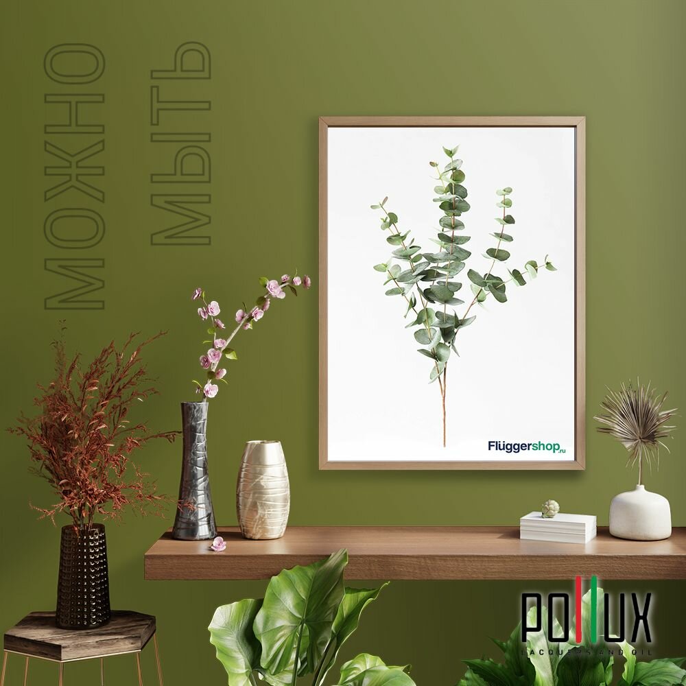 Краска моющаяся интерьерная для стен и потолков, Pollux INTERIOR без запаха, быстросохнущая, акриловая, матовое покрытие, цвет NCS S 3020-G60Y, 1л.