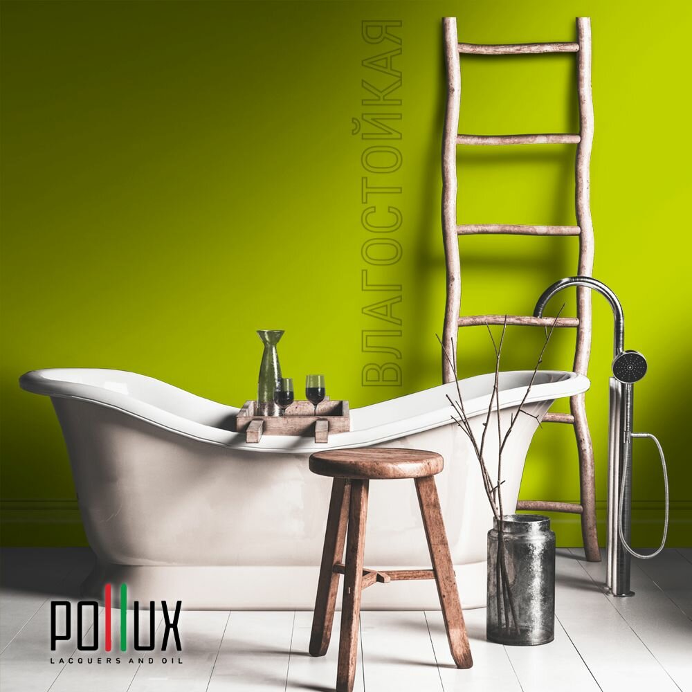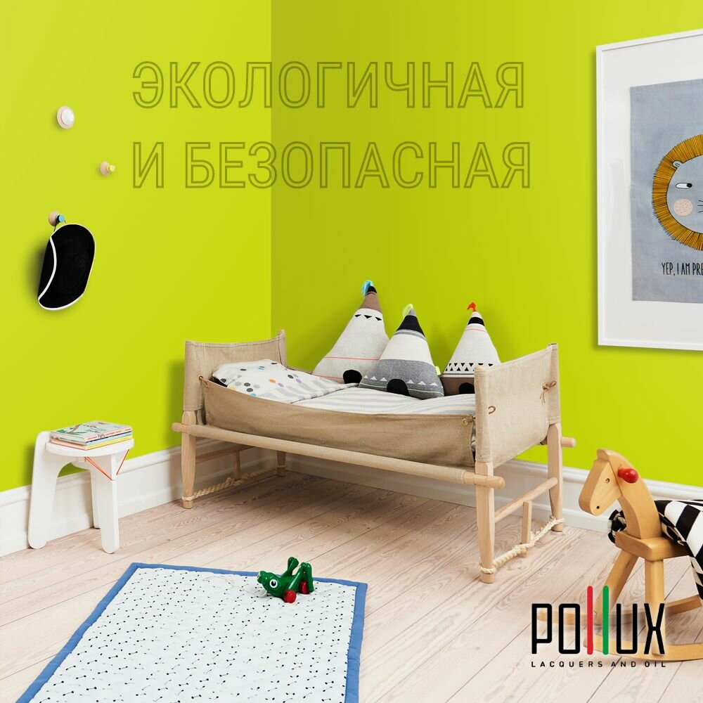 Краска моющаяся интерьерная для стен и потолков, Pollux INTERIOR без запаха, быстросохнущая, акриловая, матовое покрытие, цвет NCS S 4550-G60Y, 1л.