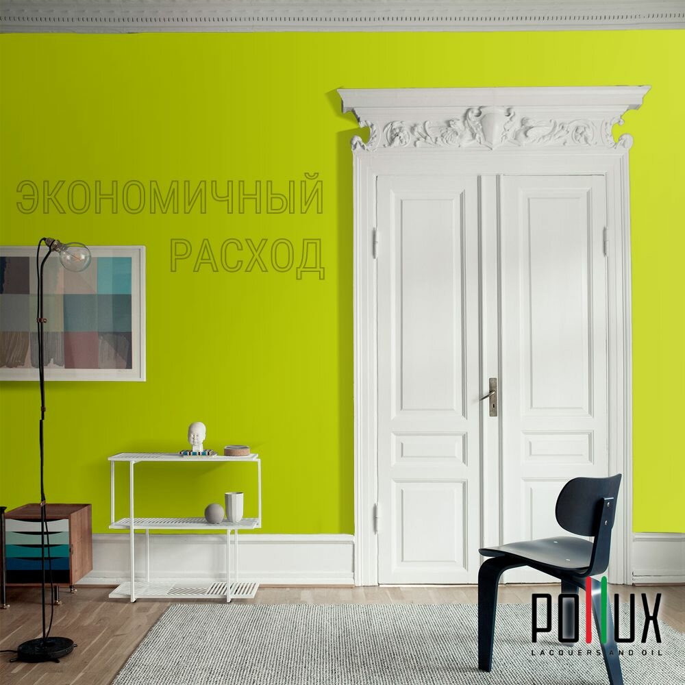 Краска моющаяся интерьерная для стен и потолков, Pollux INTERIOR без запаха, быстросохнущая, акриловая, матовое покрытие, цвет NCS S 1060-G60Y, 1л.
