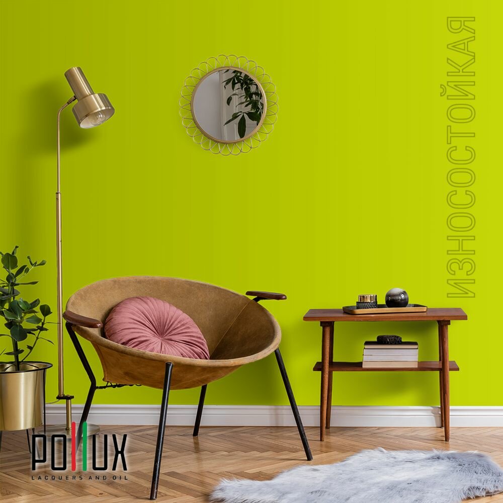 Краска моющаяся интерьерная для стен и потолков, Pollux INTERIOR без запаха, быстросохнущая, акриловая, матовое покрытие, цвет NCS S 0575-G60Y, 1л.