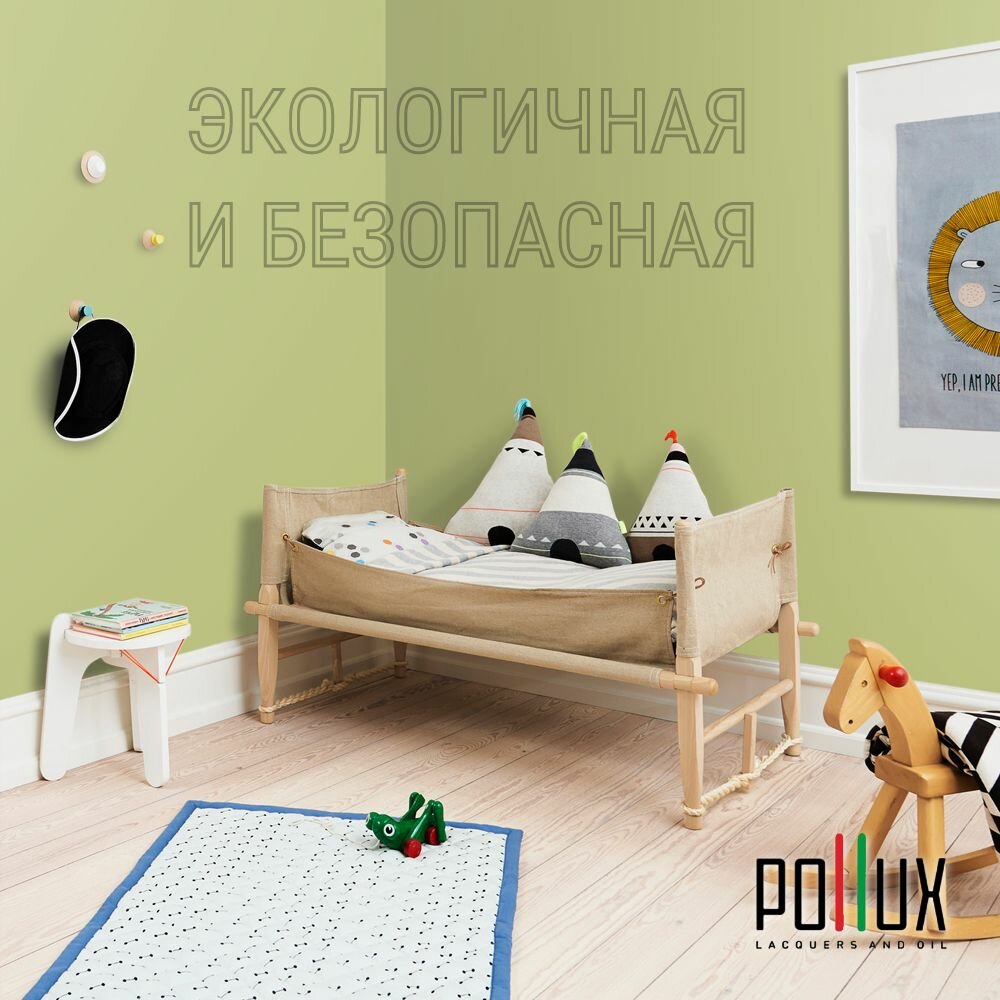Краска моющаяся интерьерная для стен и потолков, Pollux INTERIOR без запаха, быстросохнущая, акриловая, матовое покрытие, цвет NCS S 4050-G60Y, 1л.