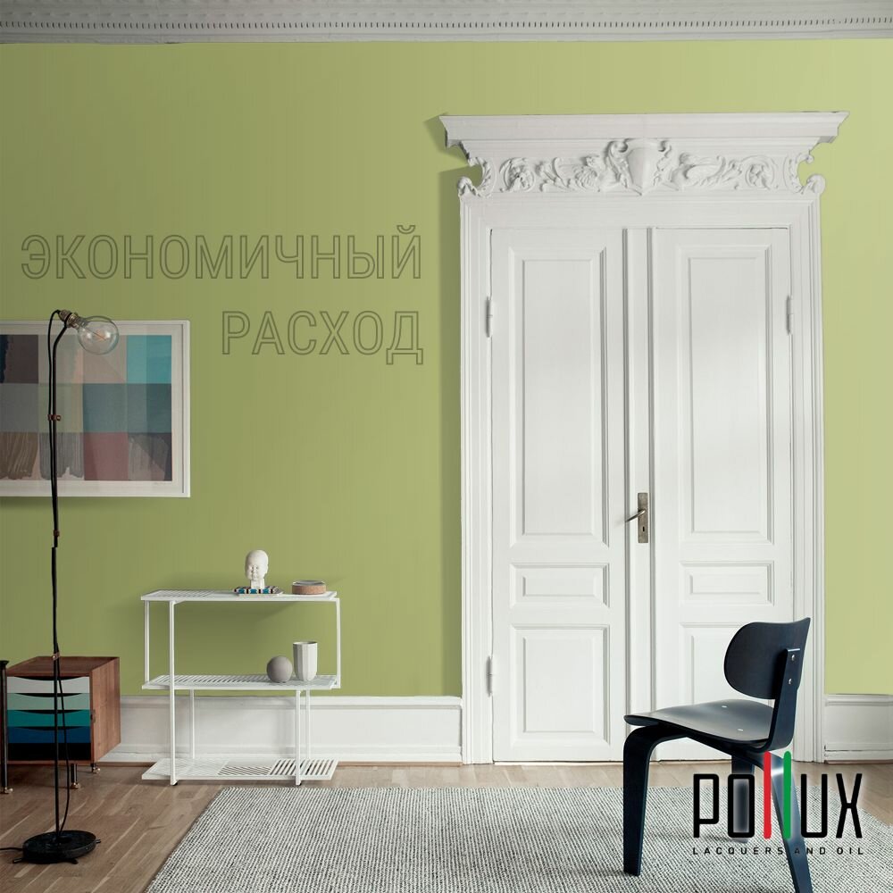 Краска моющаяся интерьерная для стен и потолков, Pollux INTERIOR без запаха, быстросохнущая, акриловая, матовое покрытие, цвет NCS S 4040-R, 1л.