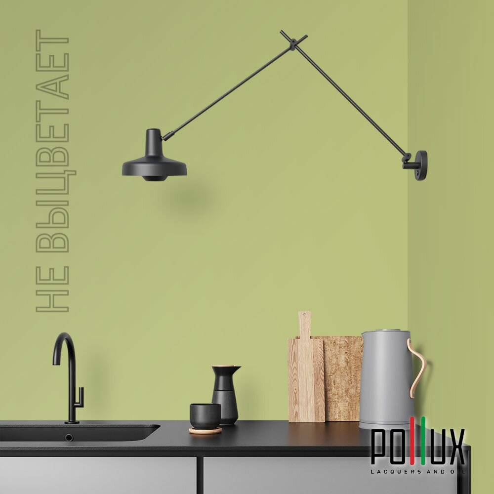 Краска моющаяся интерьерная для стен и потолков, Pollux INTERIOR без запаха, быстросохнущая, акриловая, матовое покрытие, цвет NCS S 3060-G90Y, 1л.