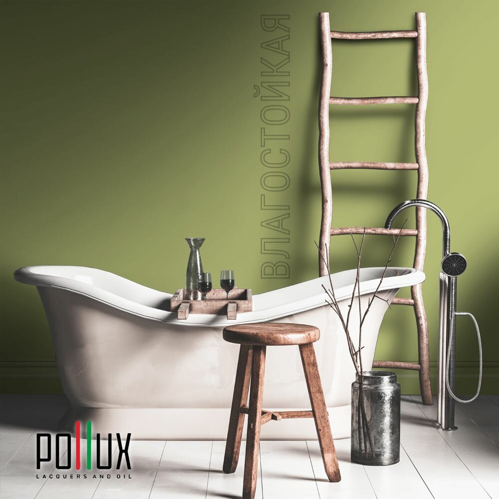 Краска моющаяся интерьерная для стен и потолков, Pollux INTERIOR без запаха, быстросохнущая, акриловая, матовое покрытие, цвет NCS S 2070-G60Y, 1л.