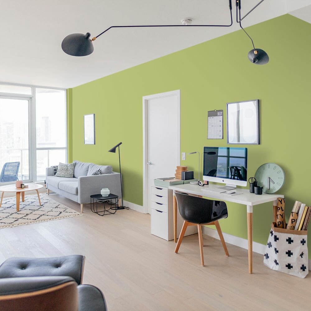 Краска моющаяся интерьерная для стен и потолков, Pollux INTERIOR без запаха, быстросохнущая, акриловая, матовое покрытие, цвет NCS S 3060-G60Y, 1л.