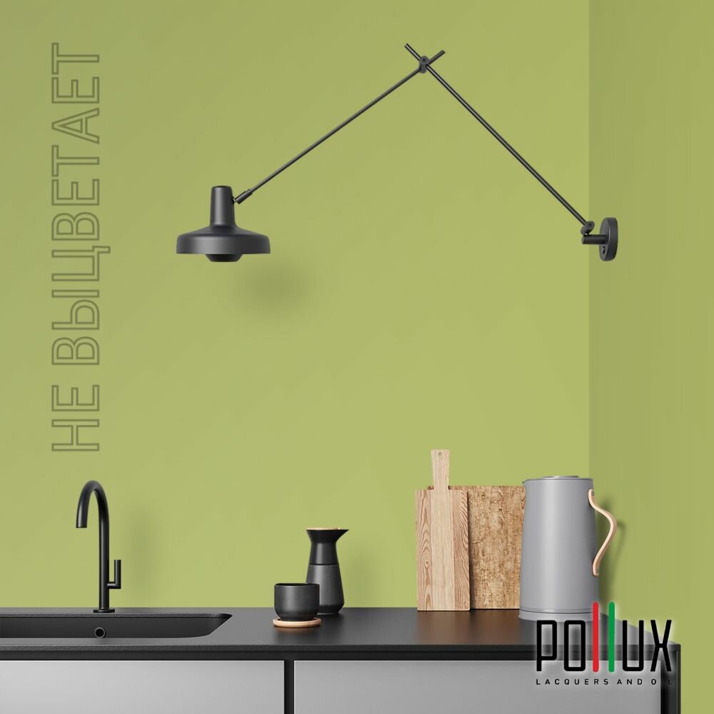 Краска моющаяся интерьерная для стен и потолков, Pollux INTERIOR без запаха, быстросохнущая, акриловая, матовое покрытие, цвет NCS S 1510-G60Y, 1л.