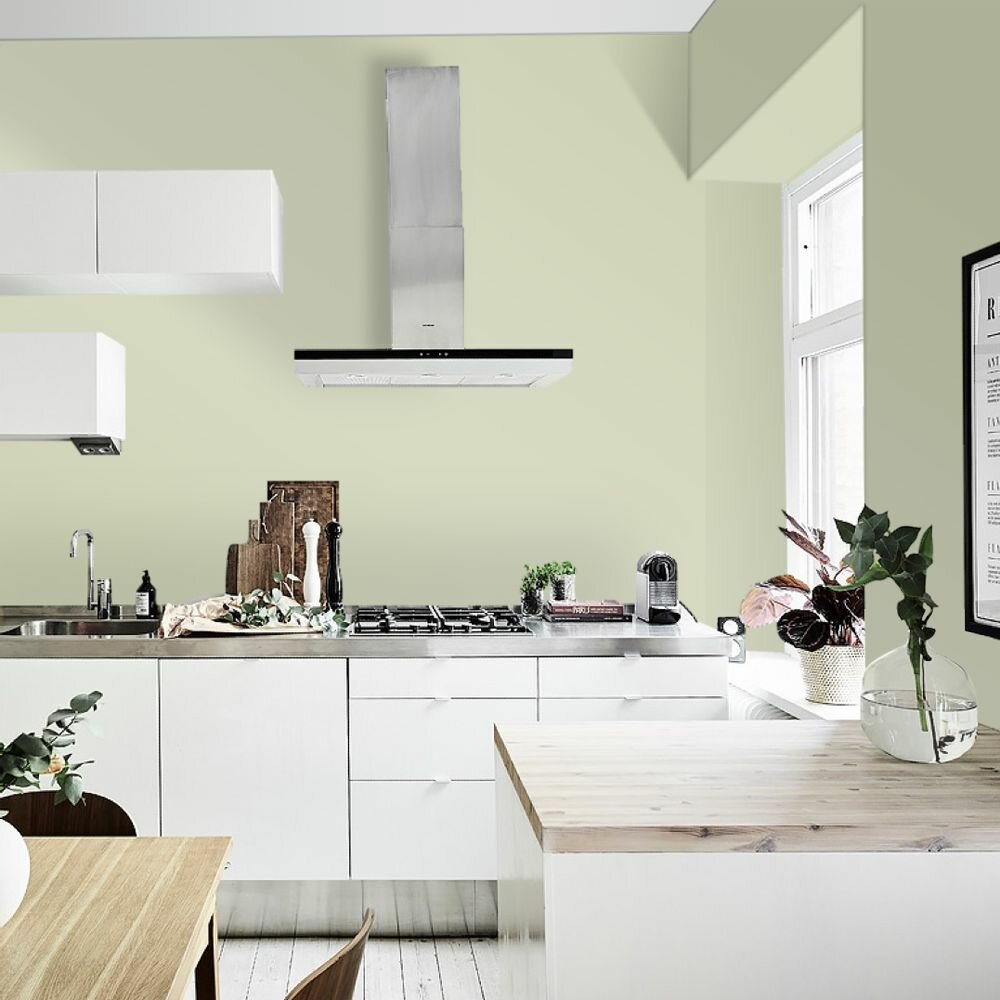 Краска моющаяся интерьерная для стен и потолков, Pollux INTERIOR без запаха, быстросохнущая, акриловая, матовое покрытие, цвет NCS S 0540-G60Y, 1л.
