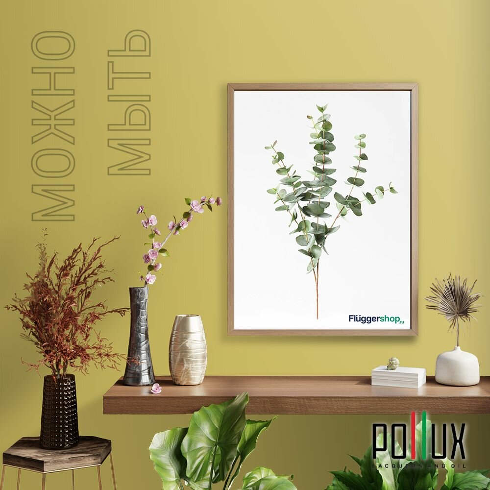 Краска моющаяся интерьерная для стен и потолков, Pollux INTERIOR без запаха, быстросохнущая, акриловая, матовое покрытие, цвет NCS S 6020-G90Y, 1л.