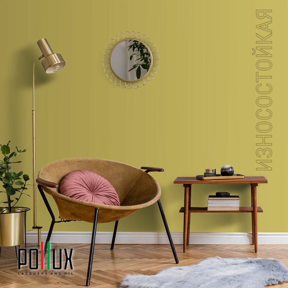 Краска моющаяся интерьерная для стен и потолков, Pollux INTERIOR без запаха, быстросохнущая, акриловая, матовое покрытие, цвет NCS S 1060-G90Y, 1л.