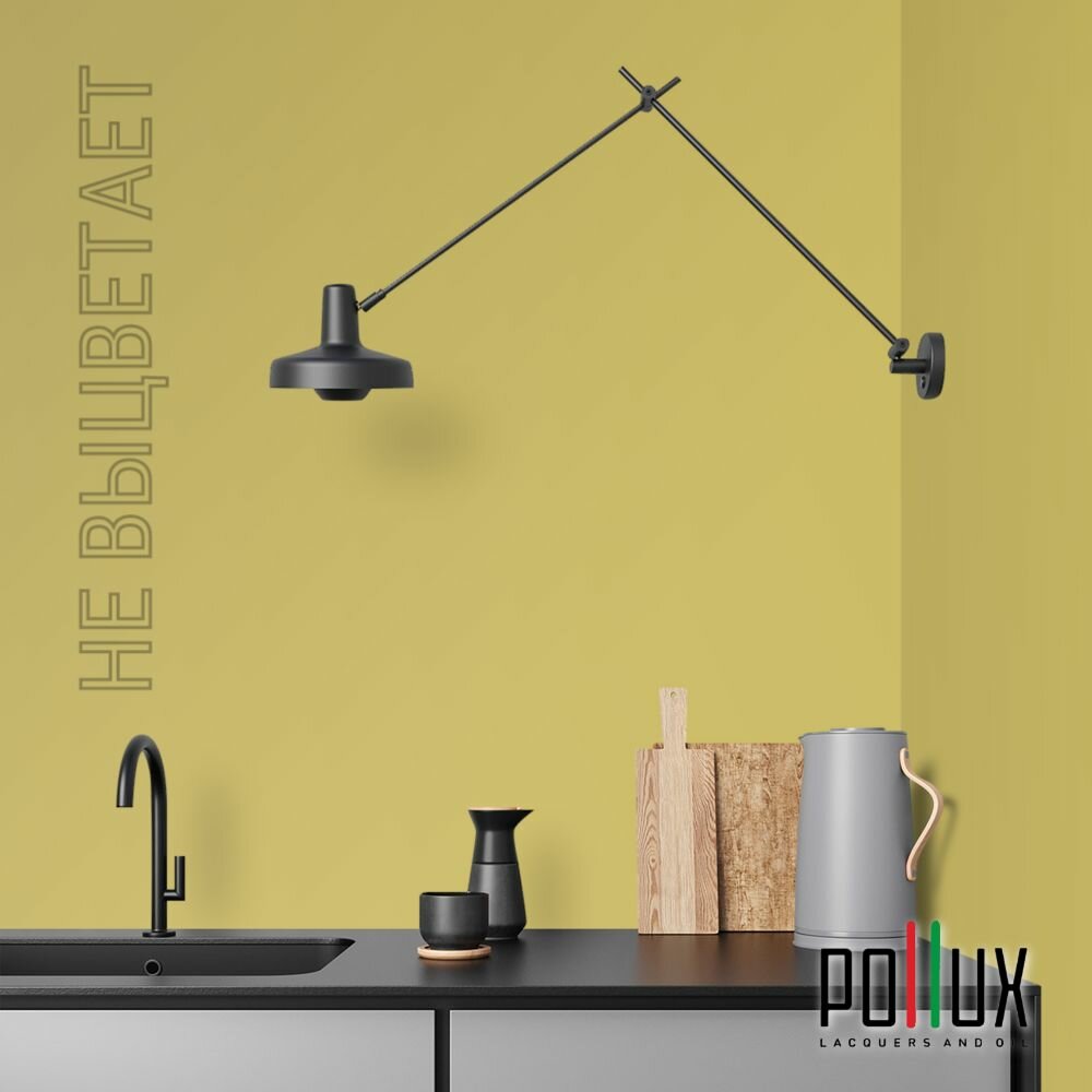 Краска моющаяся интерьерная для стен и потолков, Pollux INTERIOR без запаха, быстросохнущая, акриловая, матовое покрытие, цвет NCS S 0575-G90Y, 1л.
