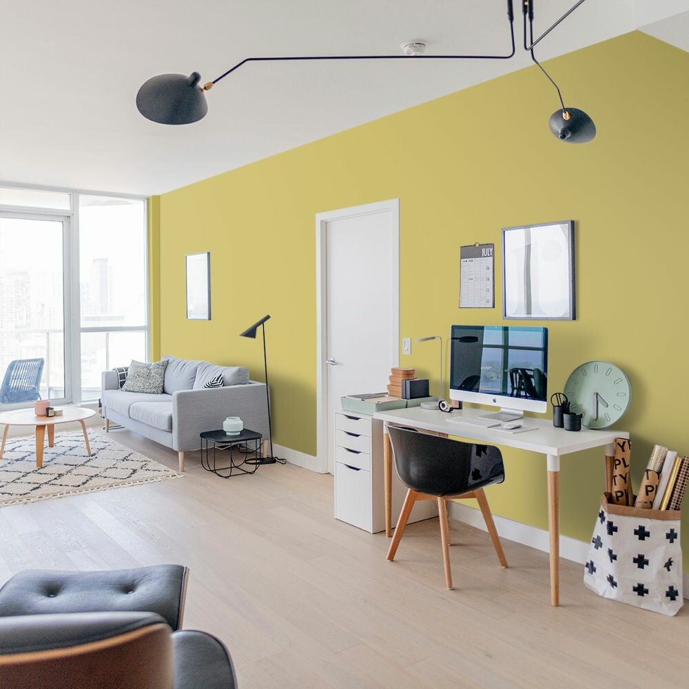 Краска моющаяся интерьерная для стен и потолков, Pollux INTERIOR без запаха, быстросохнущая, акриловая, матовое покрытие, цвет NCS S 0520-G90Y, 1л.