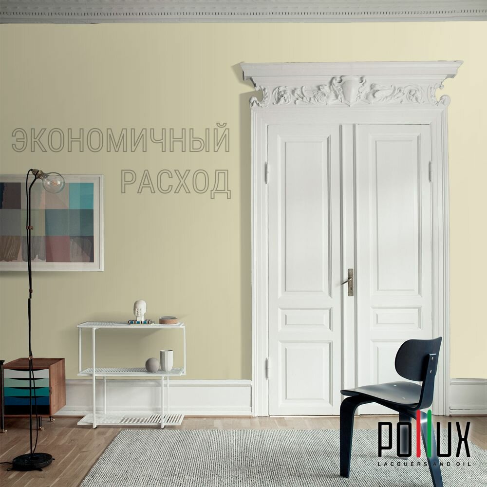 Краска моющаяся интерьерная для стен и потолков, Pollux INTERIOR без запаха, быстросохнущая, акриловая, матовое покрытие, цвет NCS S 1015-G90Y, 1л.