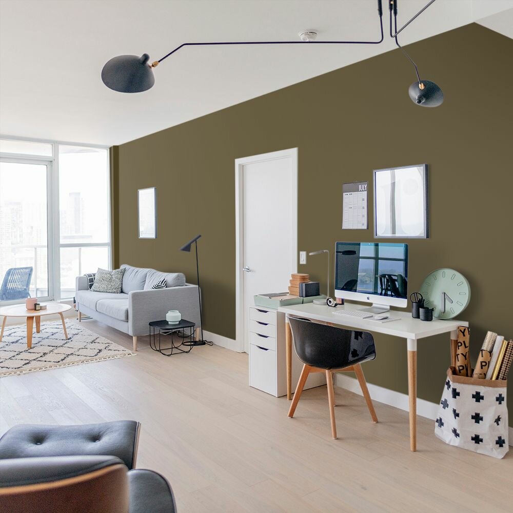 Краска моющаяся интерьерная для стен и потолков, Pollux INTERIOR без запаха, быстросохнущая, акриловая, матовое покрытие, цвет NCS S 3060-G90Y, 1л.