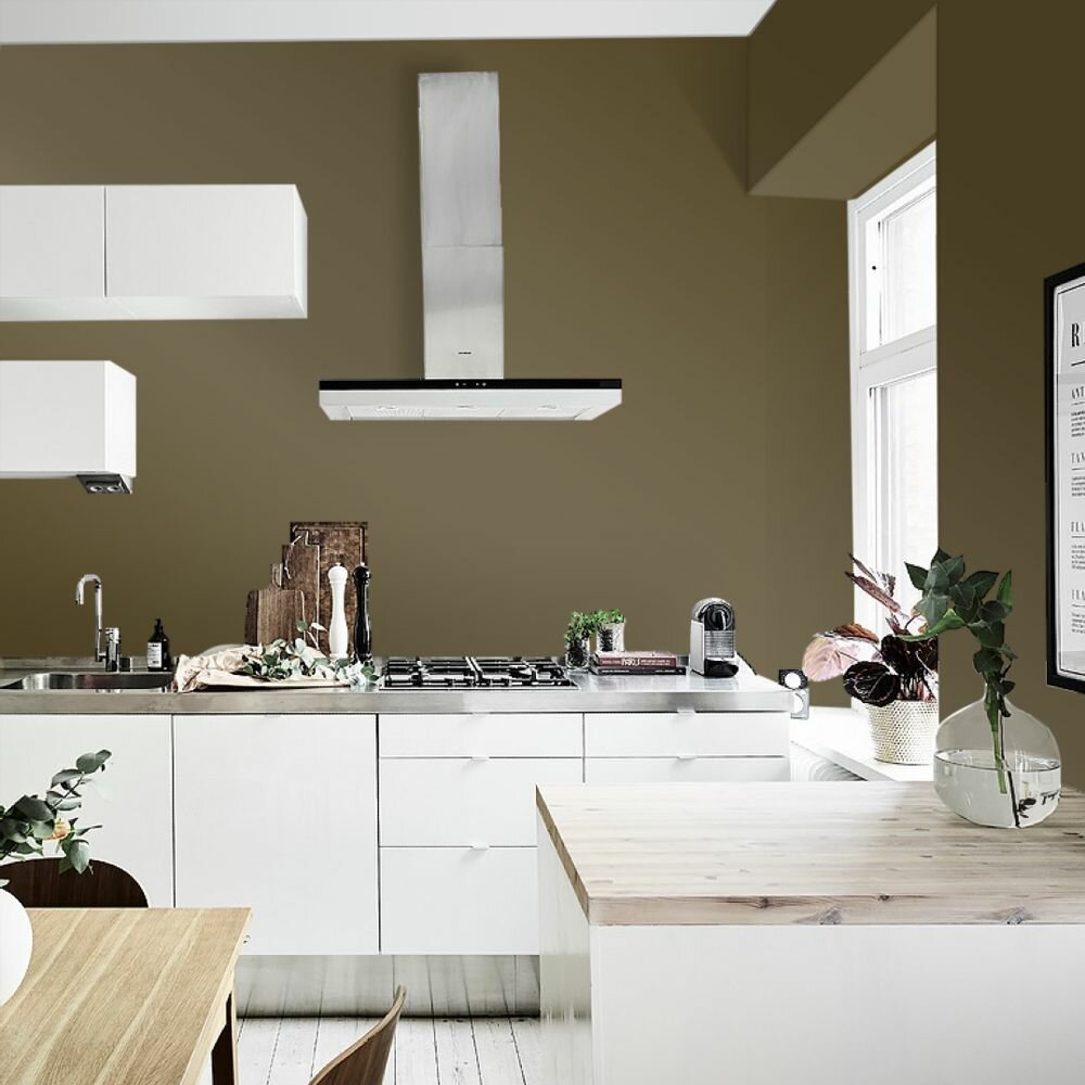Краска моющаяся интерьерная для стен и потолков, Pollux INTERIOR без запаха, быстросохнущая, акриловая, матовое покрытие, цвет NCS S 4050-G90Y, 1л.