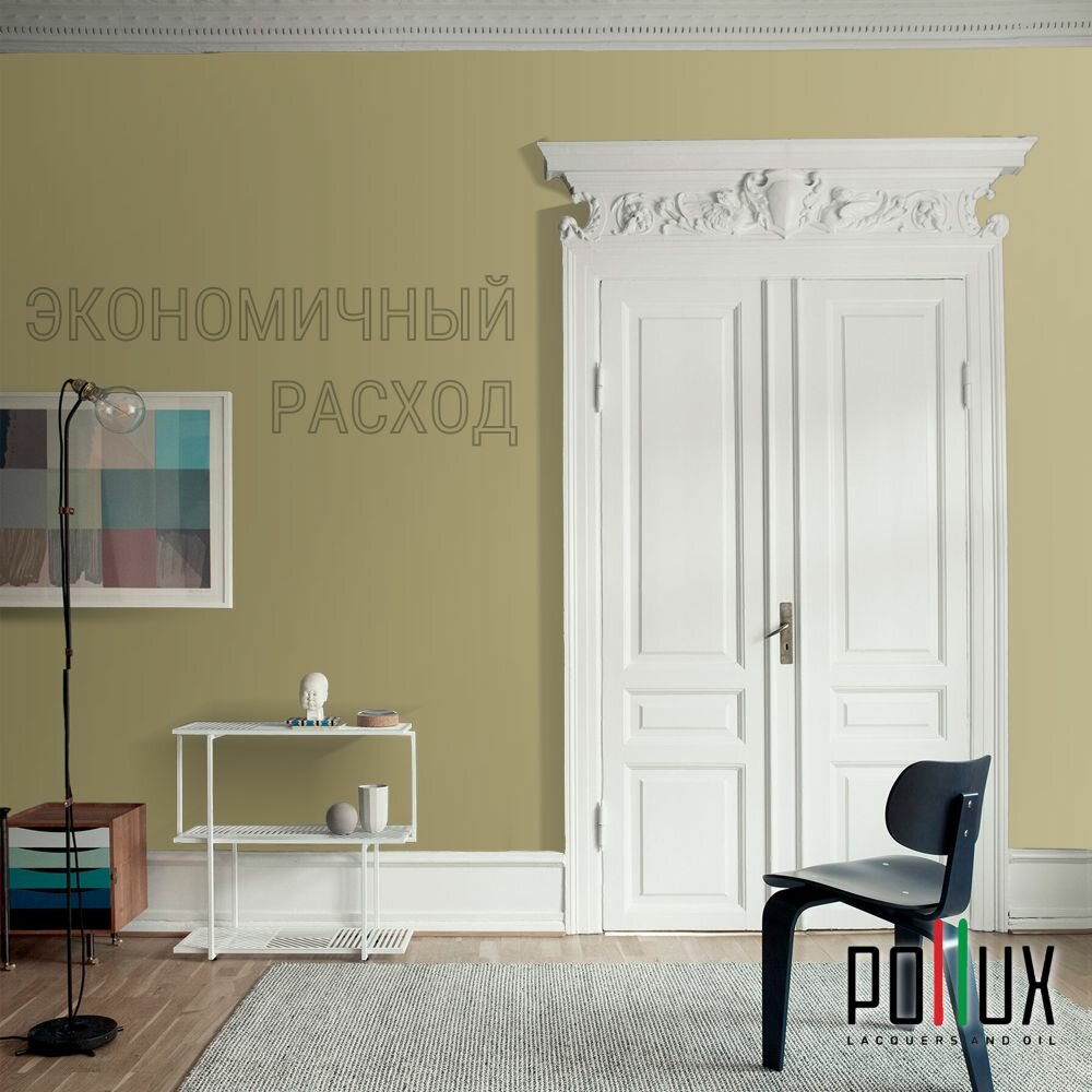 Краска моющаяся интерьерная для стен и потолков, Pollux INTERIOR без запаха, быстросохнущая, акриловая, матовое покрытие, цвет NCS S 4010-G90Y, 1л.