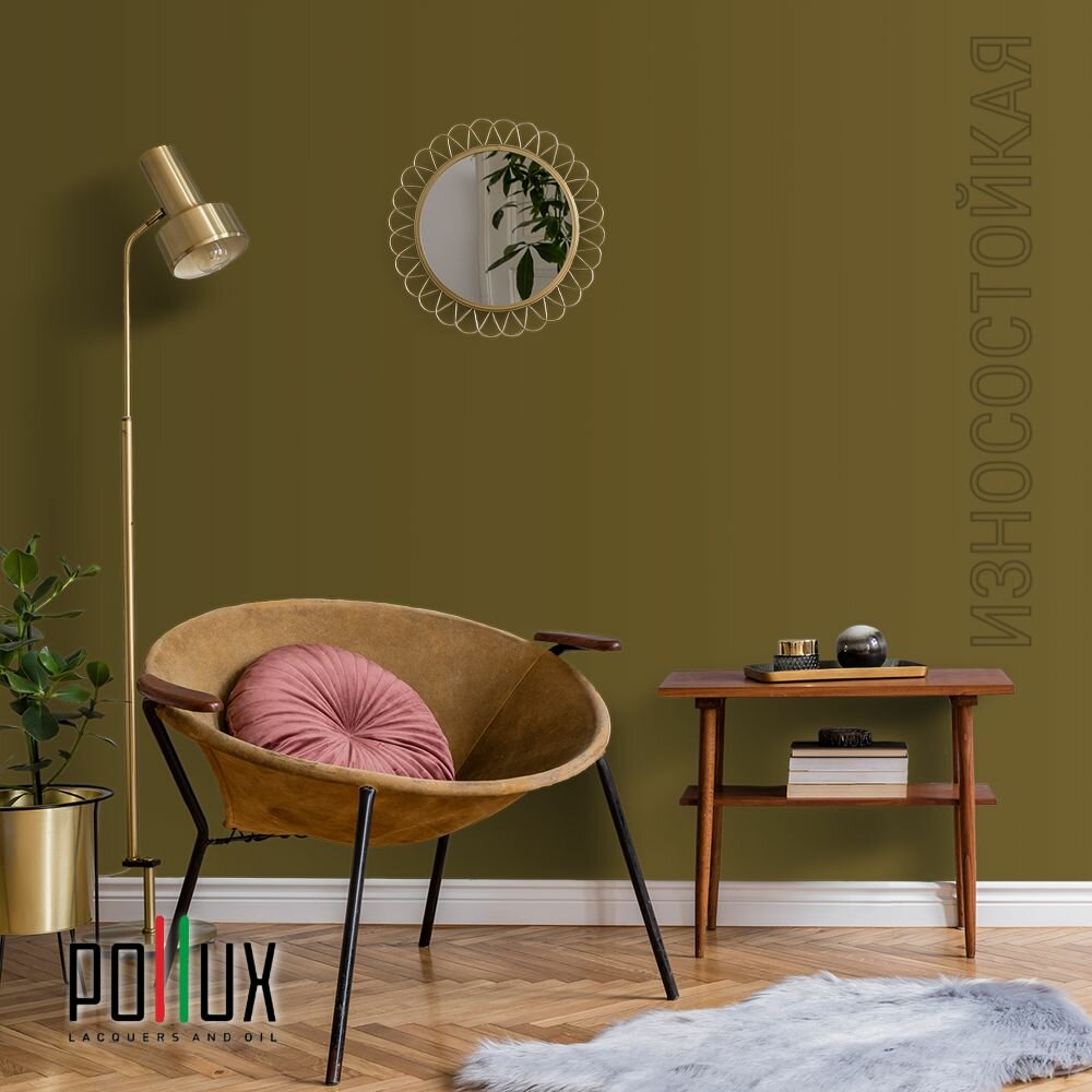 Краска моющаяся интерьерная для стен и потолков, Pollux INTERIOR без запаха, быстросохнущая, акриловая, матовое покрытие, цвет NCS S 3030-G90Y, 1л.