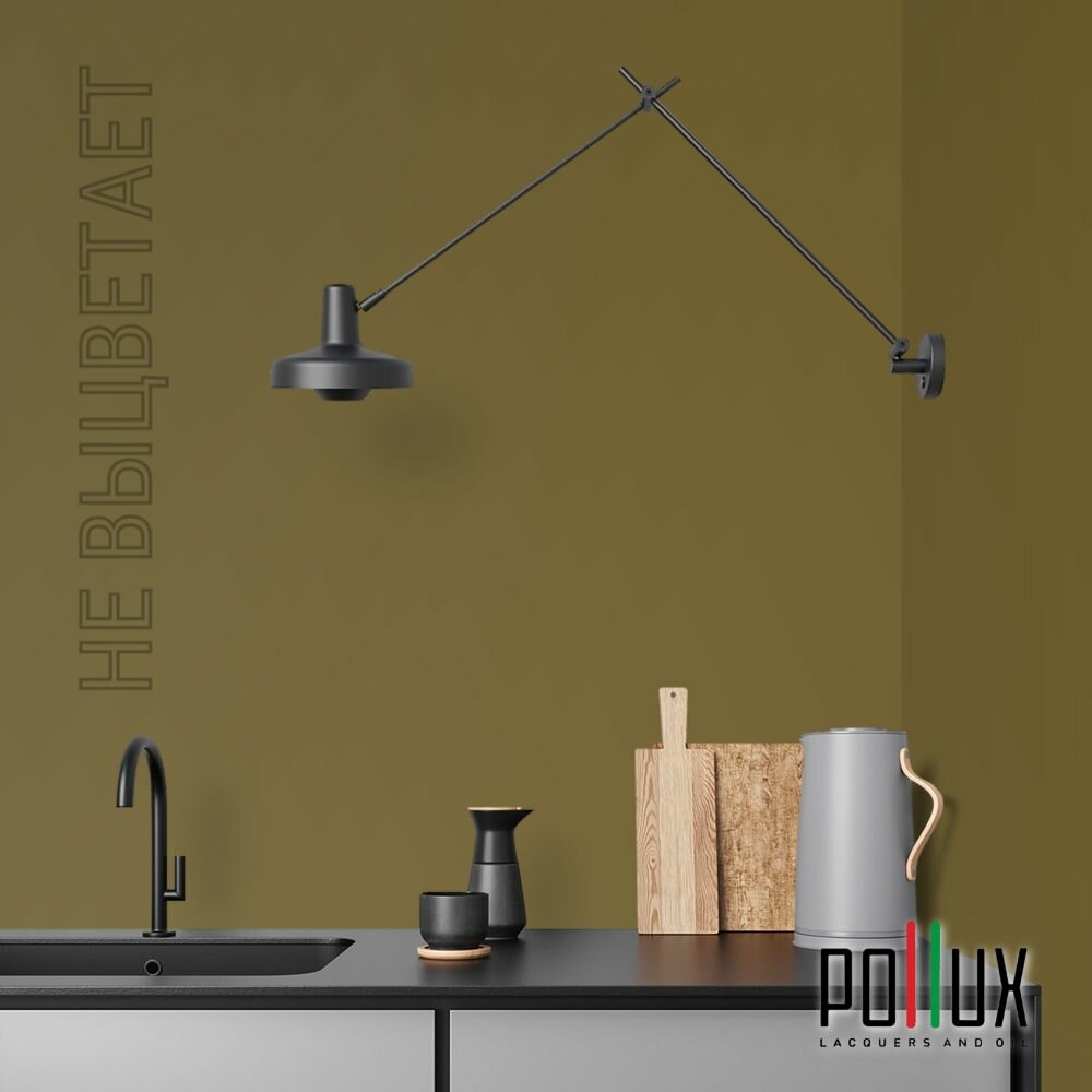 Краска моющаяся интерьерная для стен и потолков, Pollux INTERIOR без запаха, быстросохнущая, акриловая, матовое покрытие, цвет NCS S 8010-G90Y, 1л.