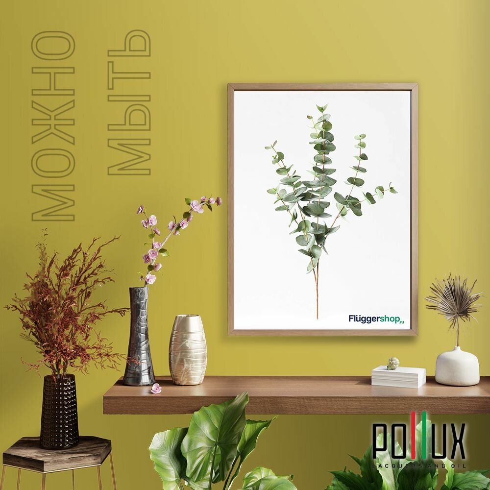 Краска моющаяся интерьерная для стен и потолков, Pollux INTERIOR без запаха, быстросохнущая, акриловая, матовое покрытие, цвет NCS S 6020-G90Y, 1л.