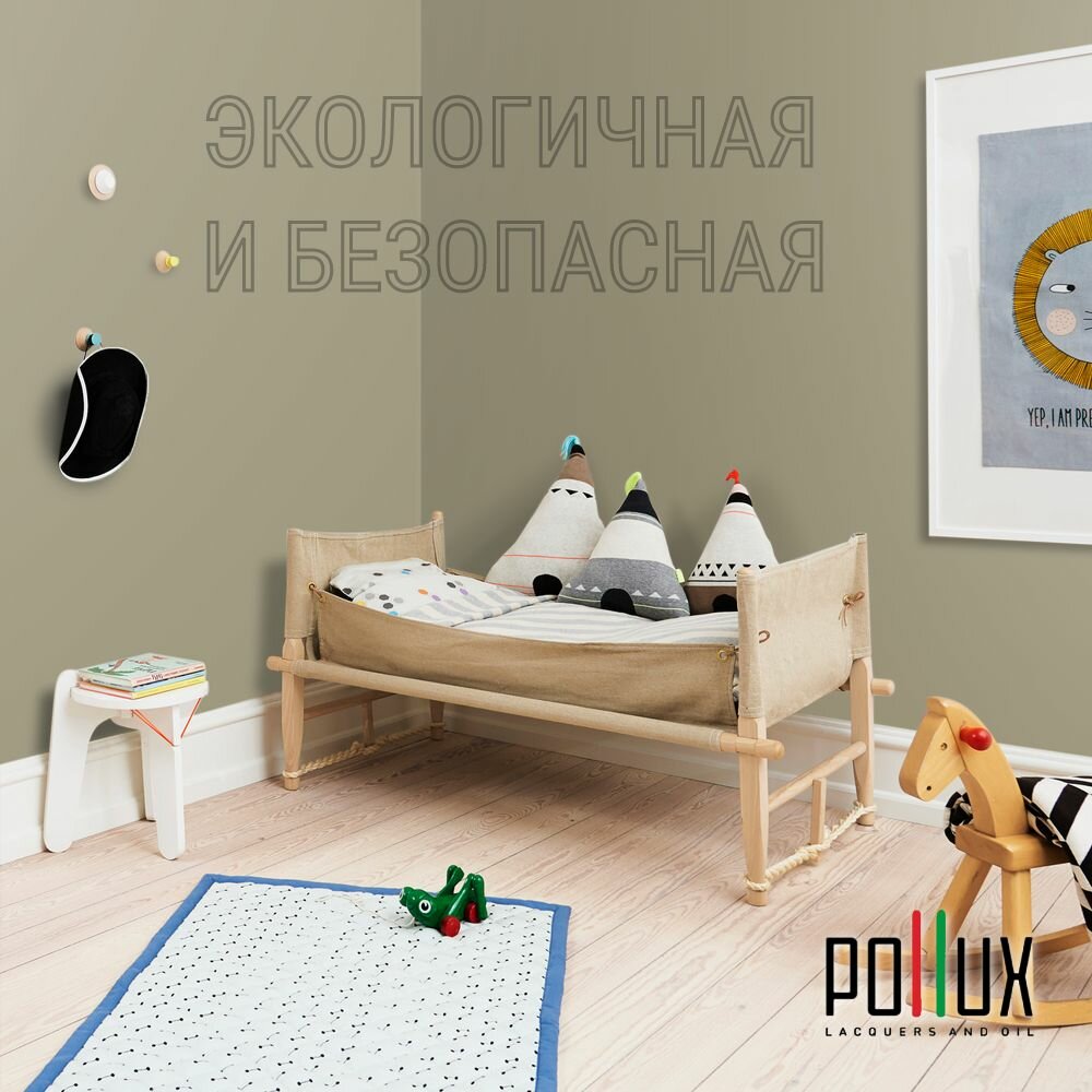 Краска моющаяся интерьерная для стен и потолков, Pollux INTERIOR без запаха, быстросохнущая, акриловая, матовое покрытие, цвет NCS S 8010-G90Y, 1л.