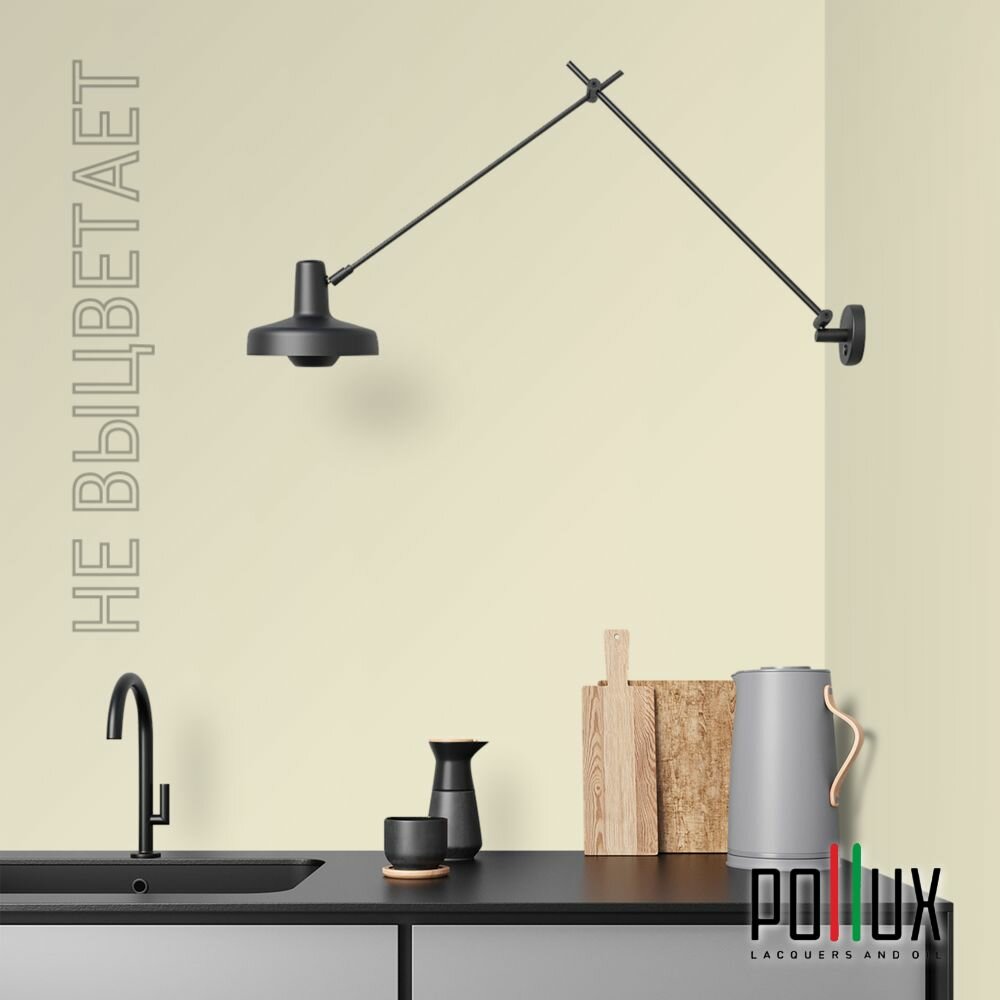 Краска моющаяся интерьерная для стен и потолков, Pollux INTERIOR без запаха, быстросохнущая, акриловая, матовое покрытие, цвет NCS S 1015-G90Y, 1л.