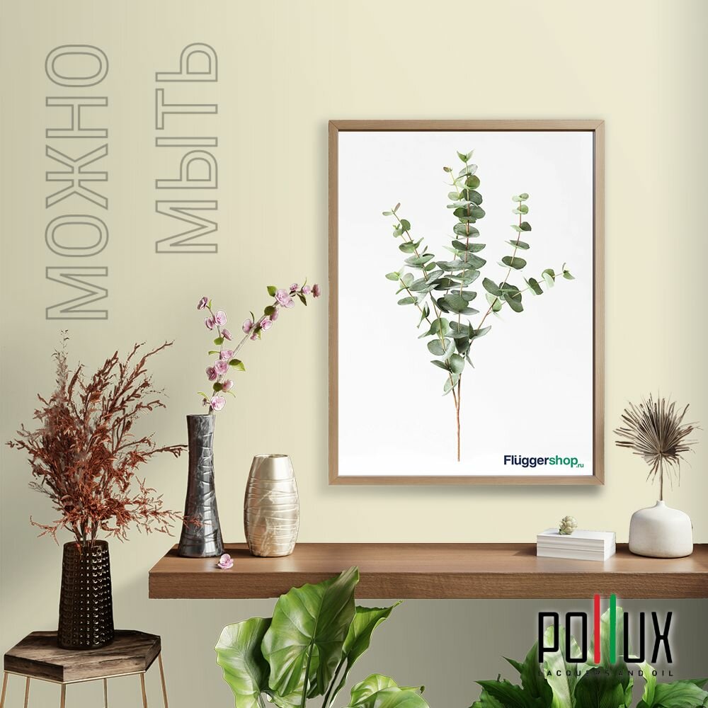 Краска моющаяся интерьерная для стен и потолков, Pollux INTERIOR без запаха, быстросохнущая, акриловая, матовое покрытие, цвет NCS S 5020-G90Y, 1л.
