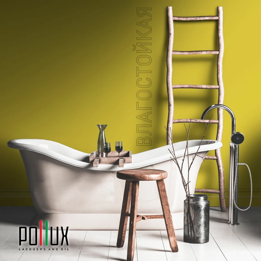 Краска моющаяся интерьерная для стен и потолков, Pollux INTERIOR без запаха, быстросохнущая, акриловая, матовое покрытие, цвет NCS S 1010-G90Y, 1л.
