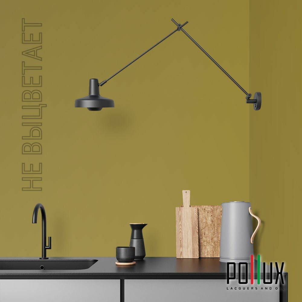 Краска моющаяся интерьерная для стен и потолков, Pollux INTERIOR без запаха, быстросохнущая, акриловая, матовое покрытие, цвет NCS S 4010-G90Y, 1л.