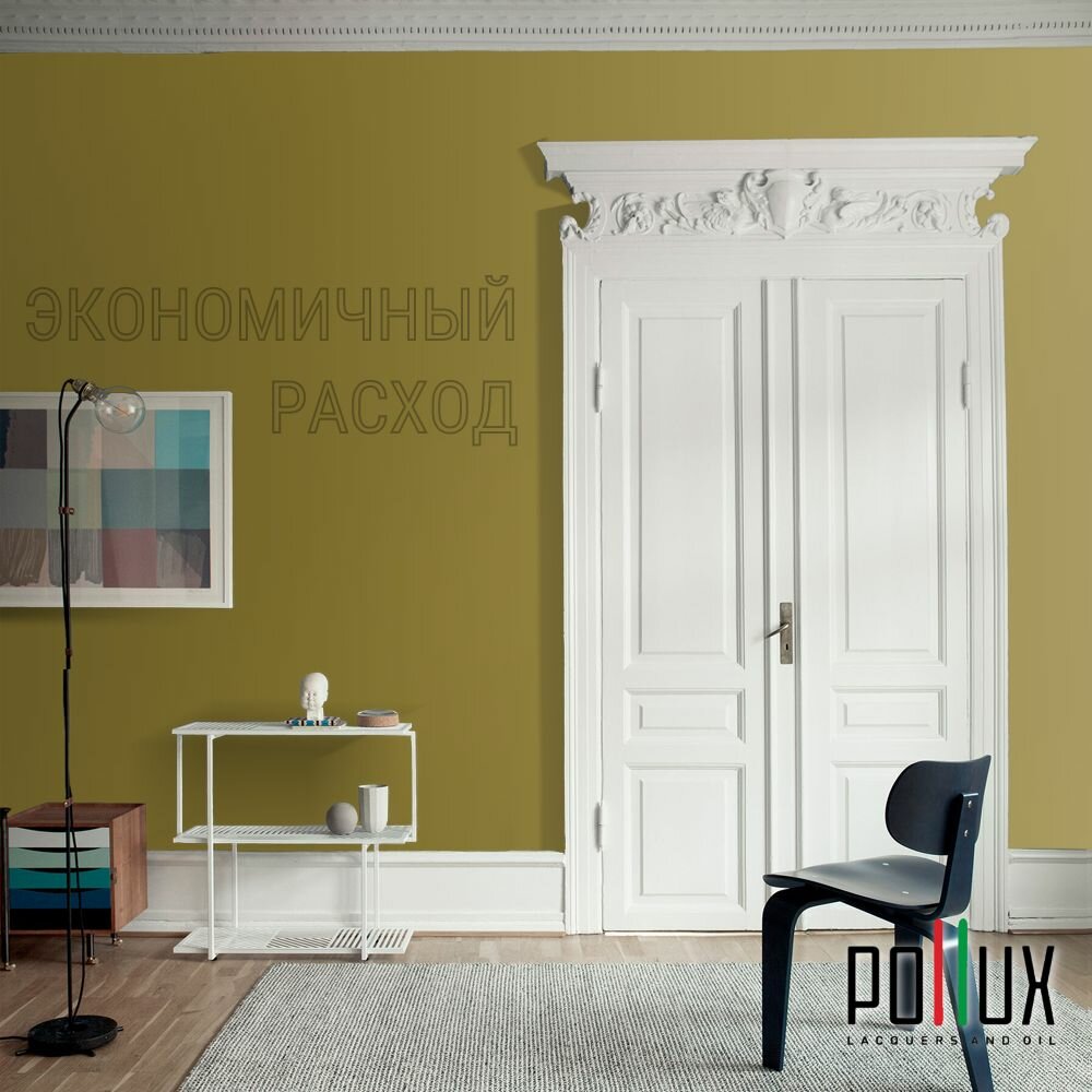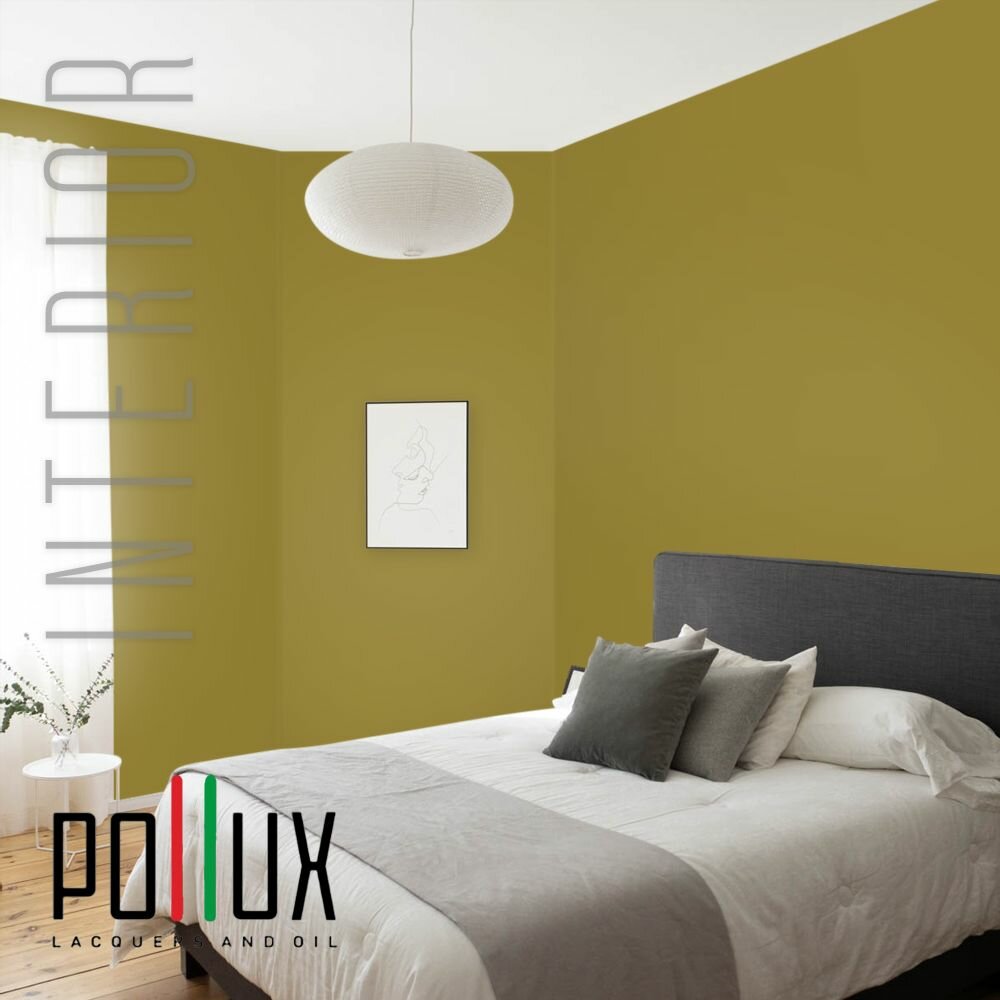 Краска моющаяся интерьерная для стен и потолков, Pollux INTERIOR без запаха, быстросохнущая, акриловая, матовое покрытие, цвет NCS S 1060-G90Y, 1л.
