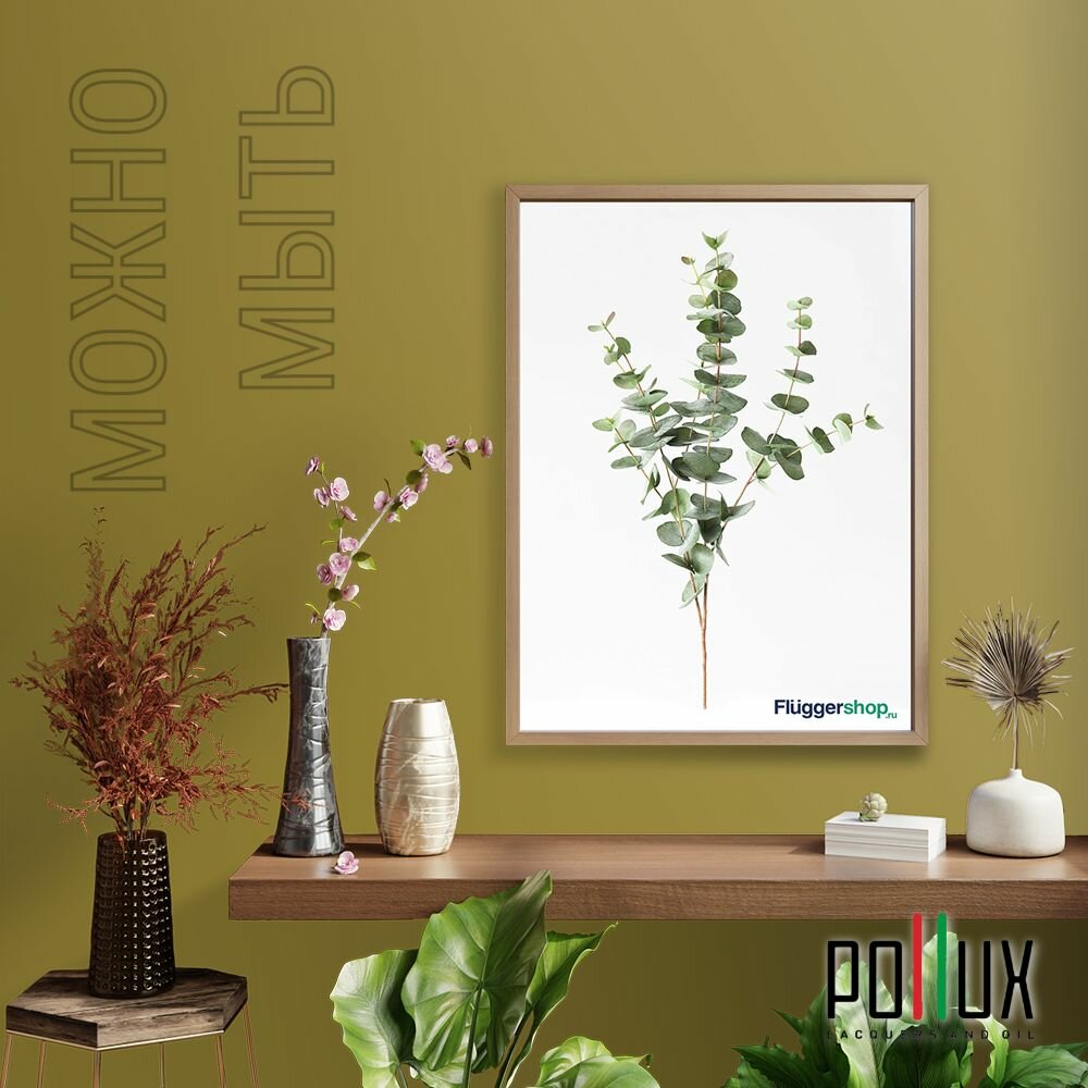 Краска моющаяся интерьерная для стен и потолков, Pollux INTERIOR без запаха, быстросохнущая, акриловая, матовое покрытие, цвет NCS S 8010-G90Y, 1л.