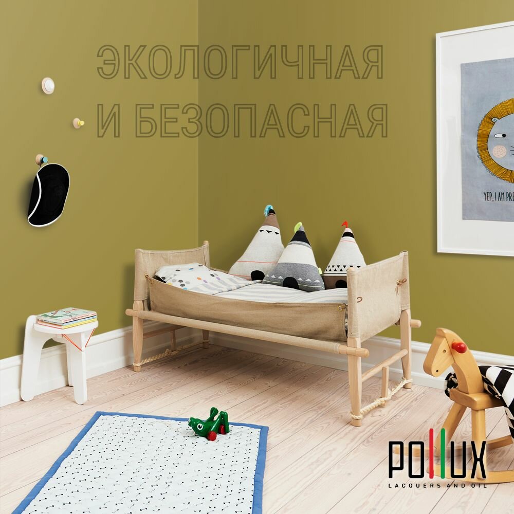 Краска моющаяся интерьерная для стен и потолков, Pollux INTERIOR без запаха, быстросохнущая, акриловая, матовое покрытие, цвет NCS S 1515-G90Y, 1л.