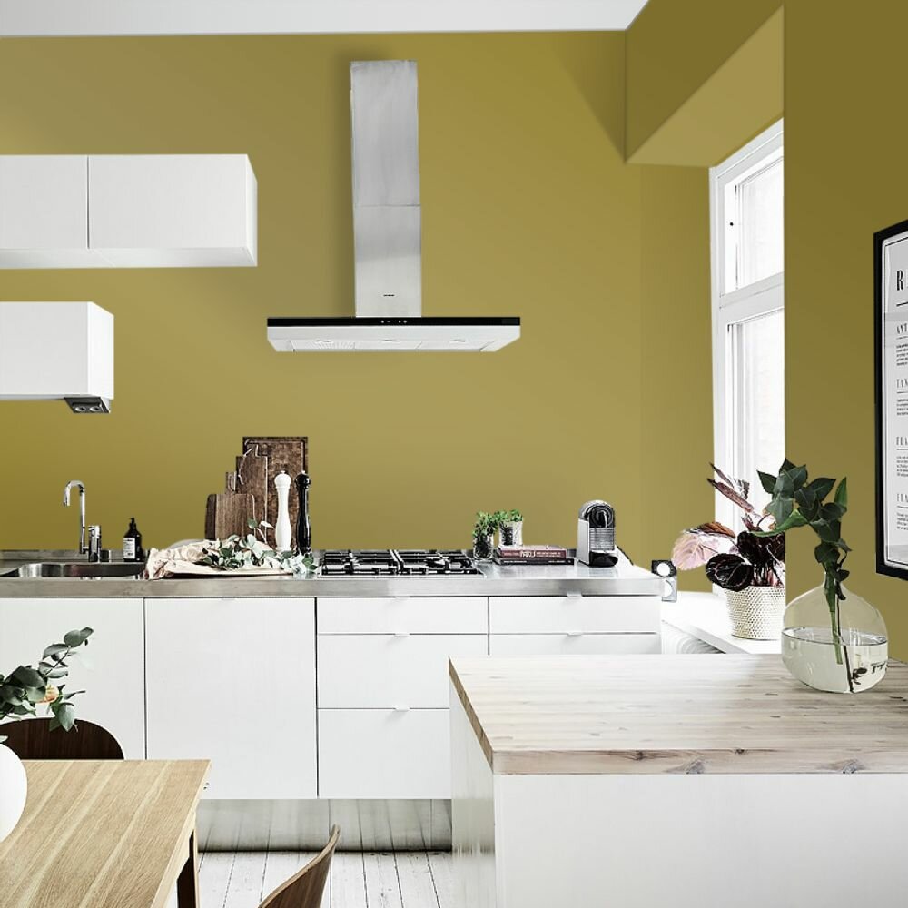 Краска моющаяся интерьерная для стен и потолков, Pollux INTERIOR без запаха, быстросохнущая, акриловая, матовое покрытие, цвет NCS S 1005-G90Y, 1л.