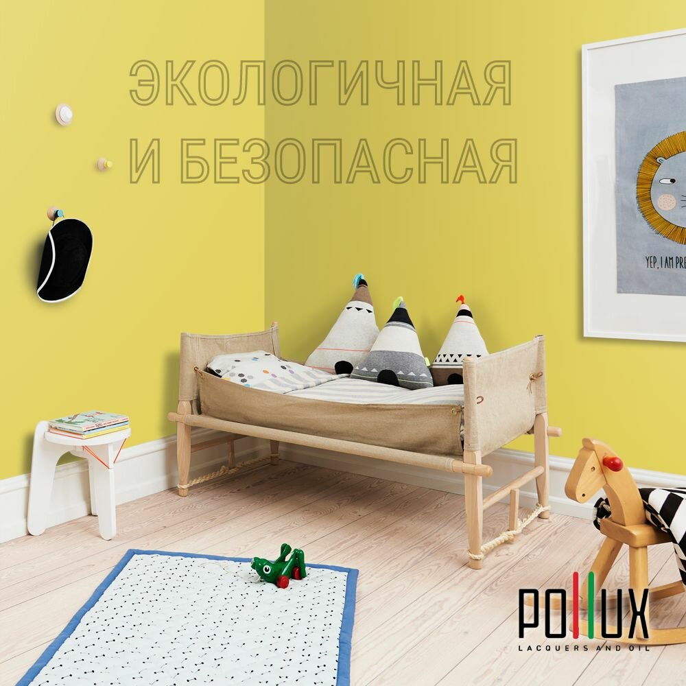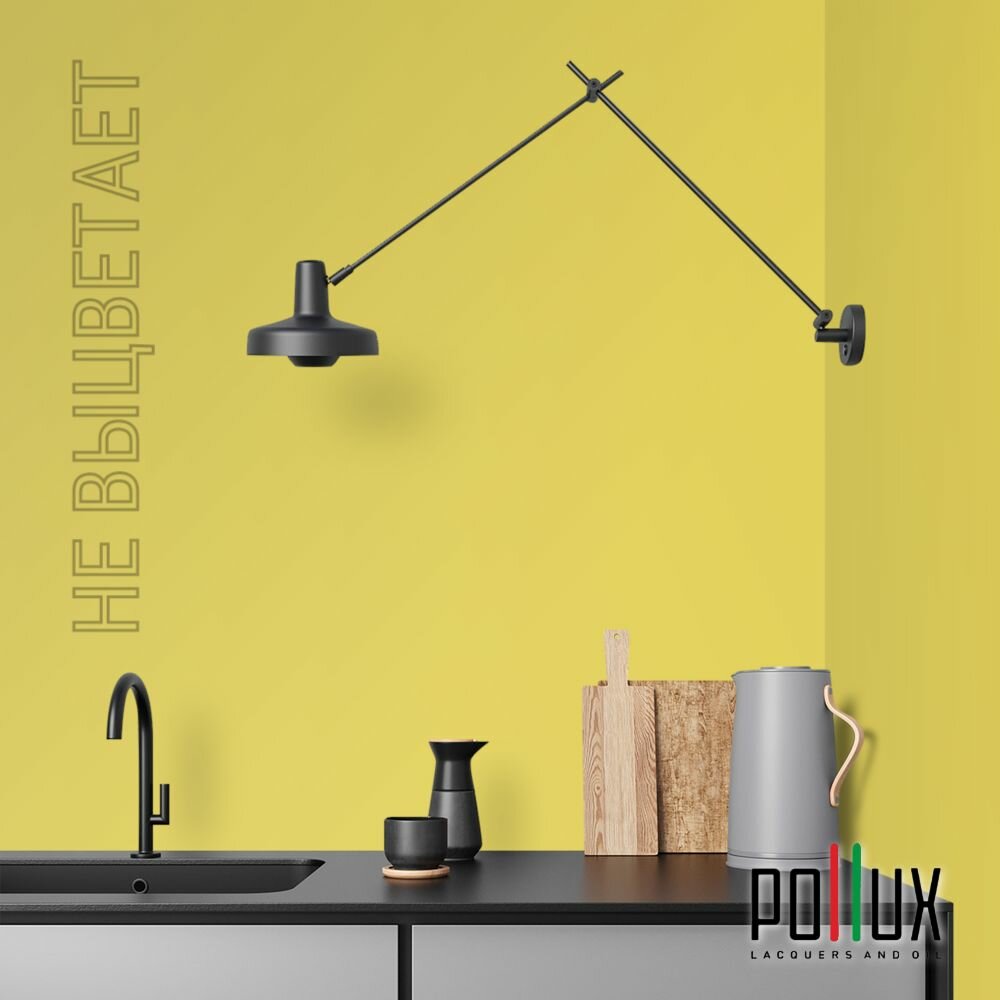 Краска моющаяся интерьерная для стен и потолков, Pollux INTERIOR без запаха, быстросохнущая, акриловая, матовое покрытие, цвет NCS S 0510-G90Y, 1л.
