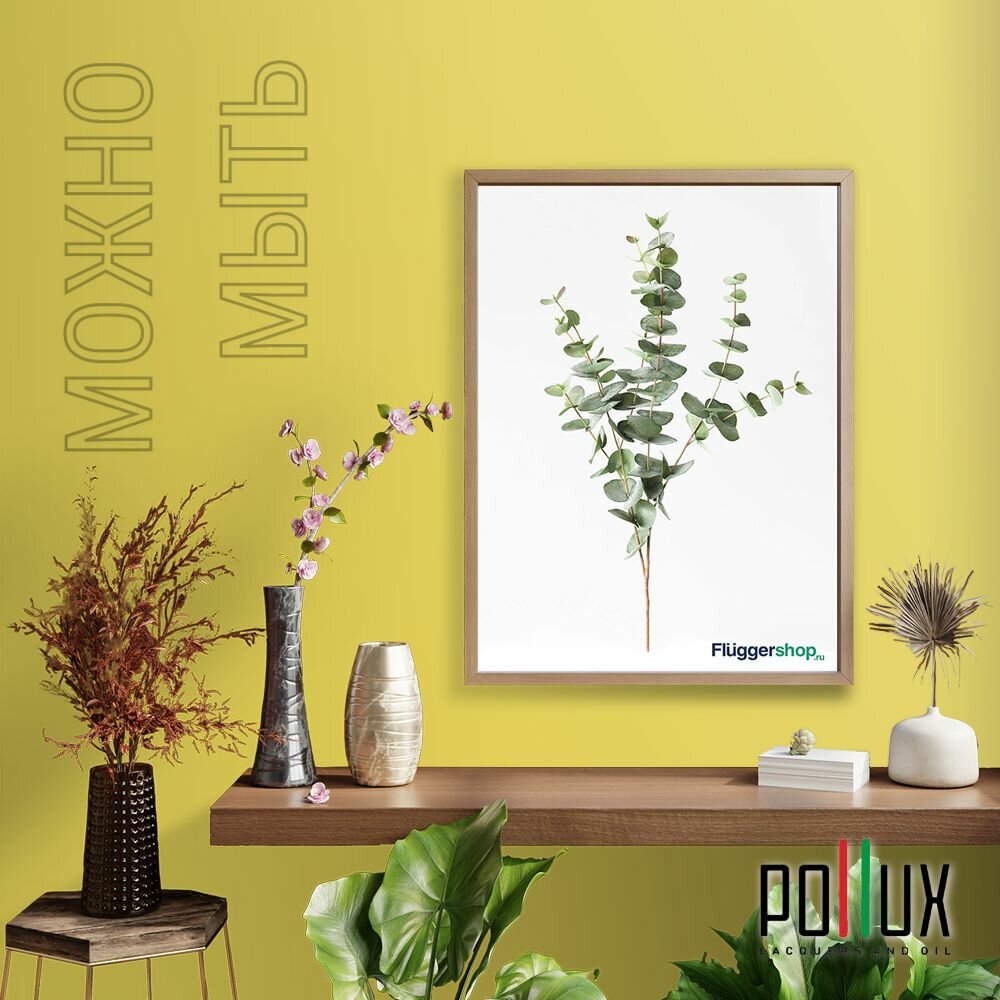 Краска моющаяся интерьерная для стен и потолков, Pollux INTERIOR без запаха, быстросохнущая, акриловая, матовое покрытие, цвет NCS S 1070-G90Y, 1л.