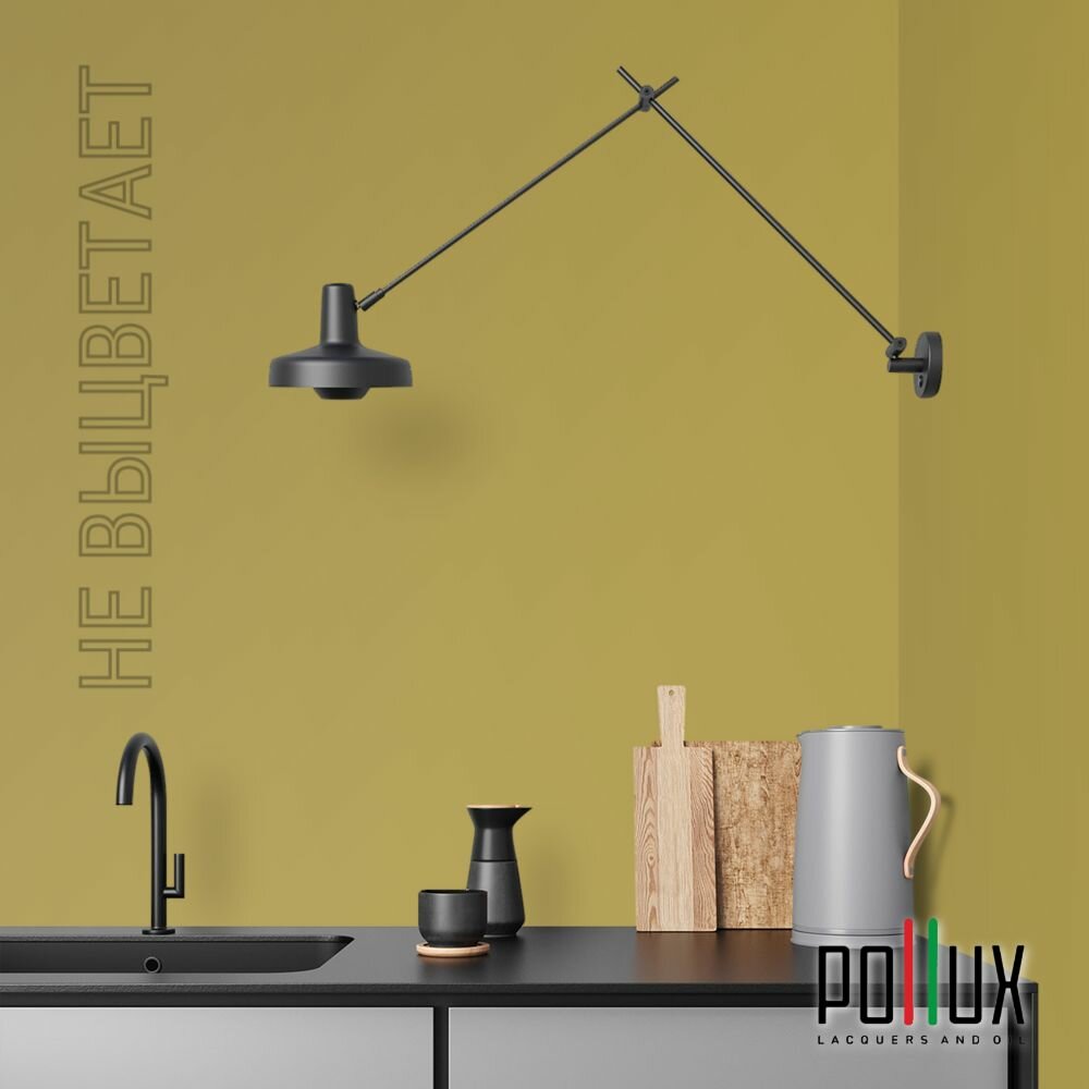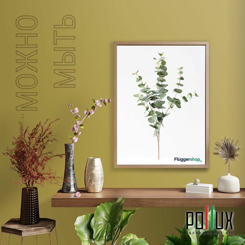 Краска моющаяся интерьерная для стен и потолков, Pollux INTERIOR без запаха, быстросохнущая, акриловая, матовое покрытие, цвет NCS S 8010-G90Y, 1л.