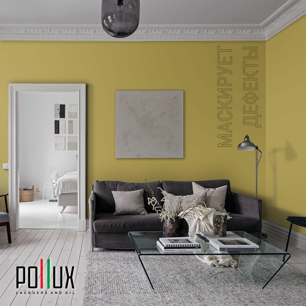 Краска моющаяся интерьерная для стен и потолков, Pollux INTERIOR без запаха, быстросохнущая, акриловая, матовое покрытие, цвет NCS S 1010-G90Y, 1л.