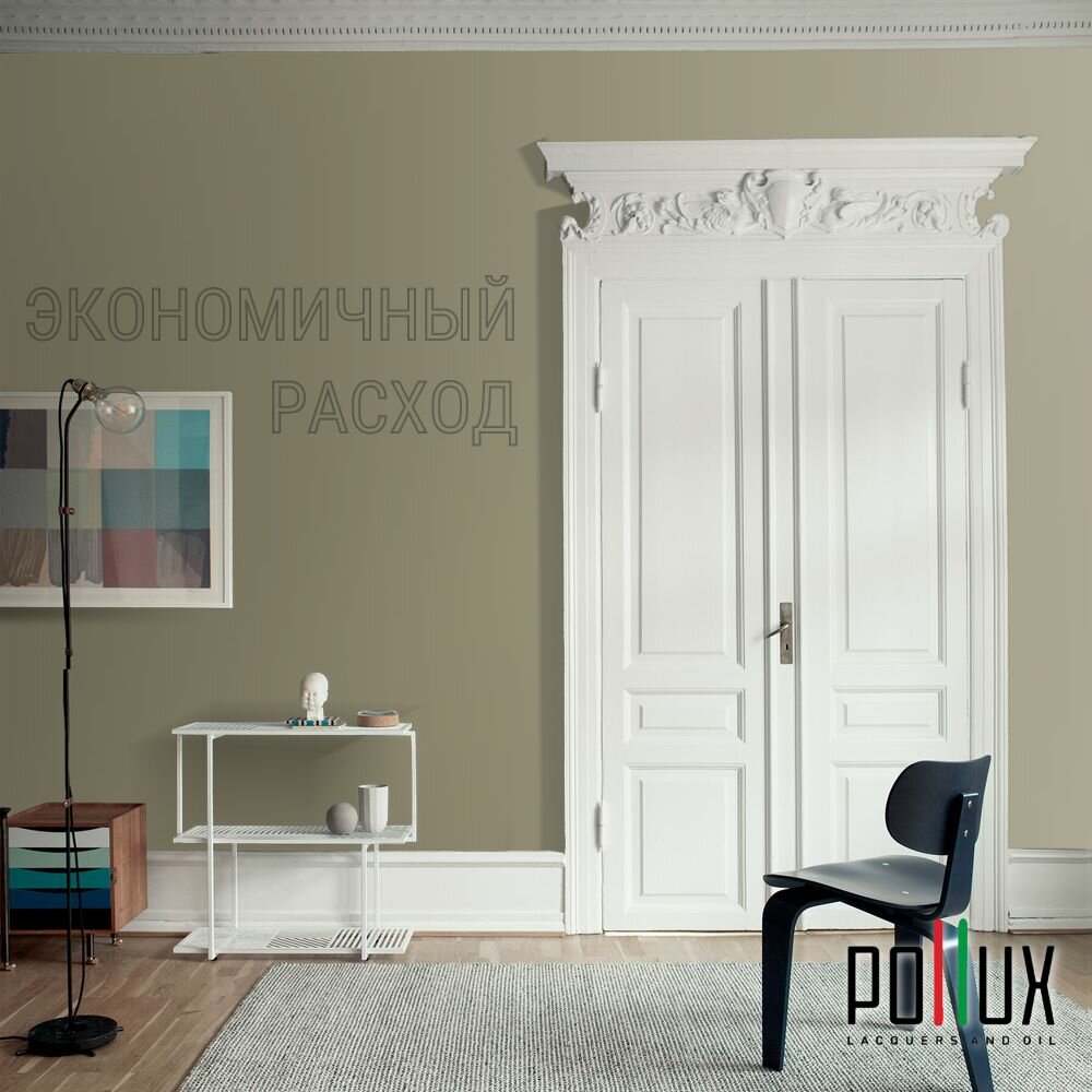 Краска моющаяся интерьерная для стен и потолков, Pollux INTERIOR без запаха, быстросохнущая, акриловая, матовое покрытие, цвет NCS S 7010-G90Y, 1л.
