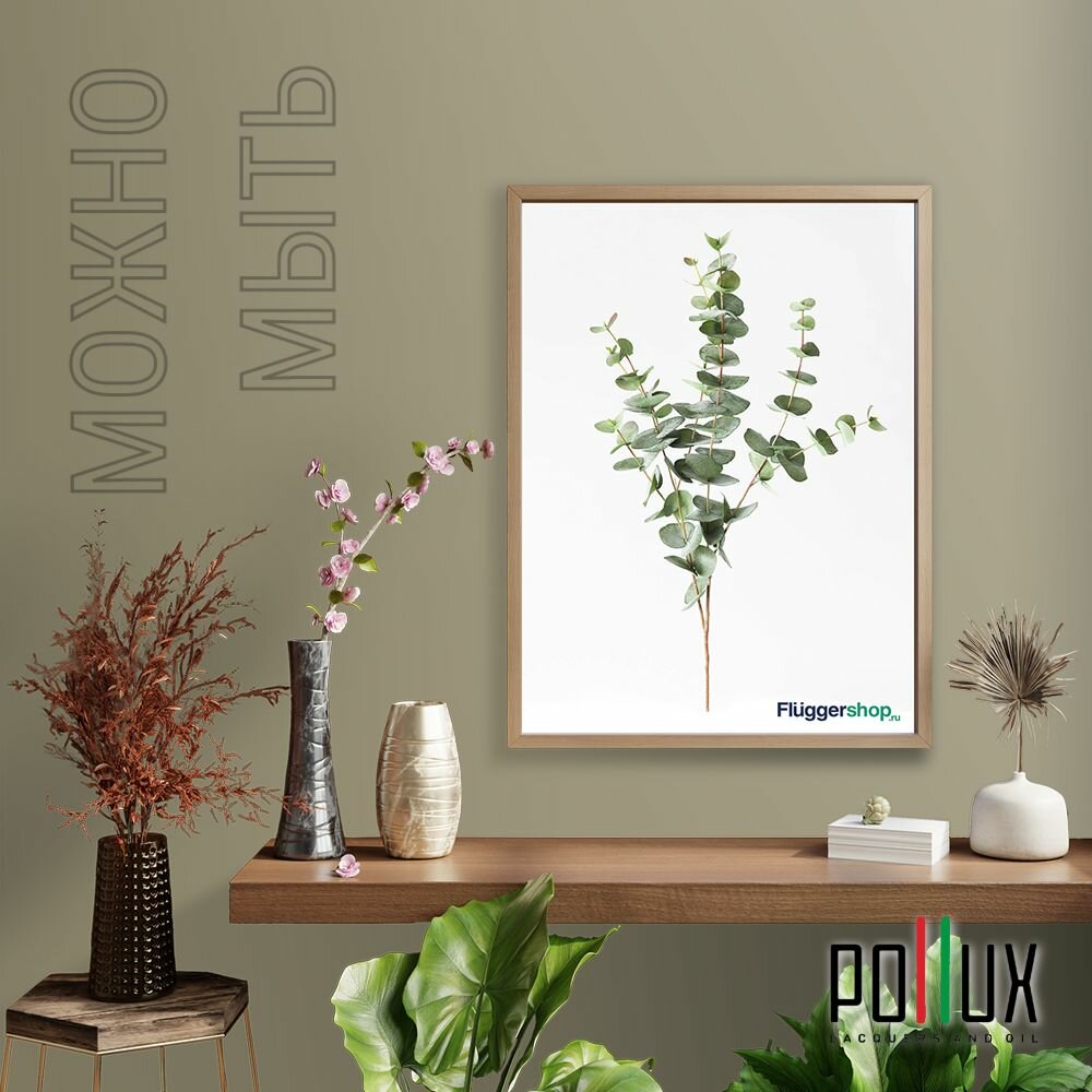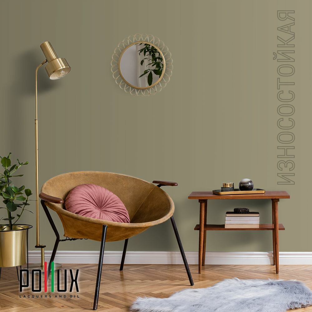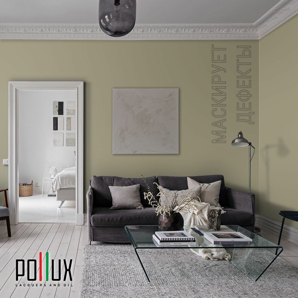 Краска моющаяся интерьерная для стен и потолков, Pollux INTERIOR без запаха, быстросохнущая, акриловая, матовое покрытие, цвет NCS S 8010-G90Y, 1л.