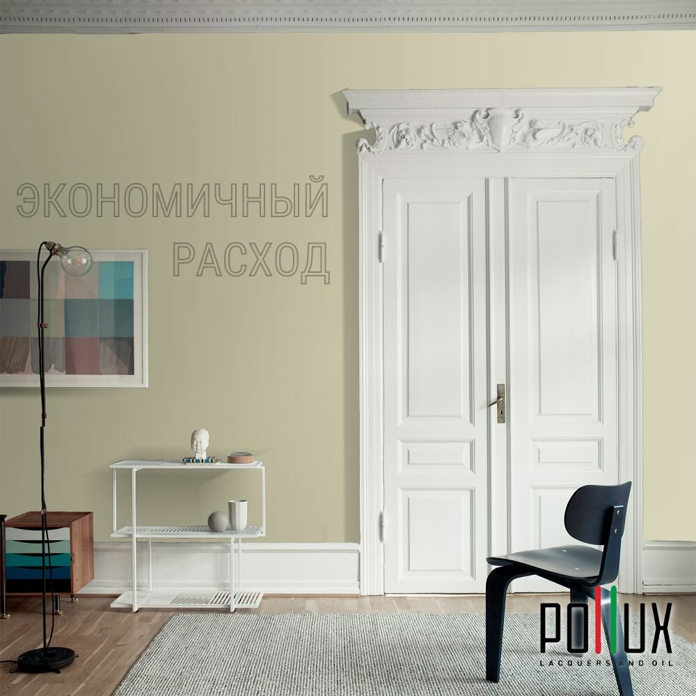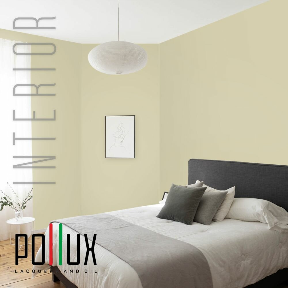 Краска моющаяся интерьерная для стен и потолков, Pollux INTERIOR без запаха, быстросохнущая, акриловая, матовое покрытие, цвет NCS S 1015-G90Y, 1л.