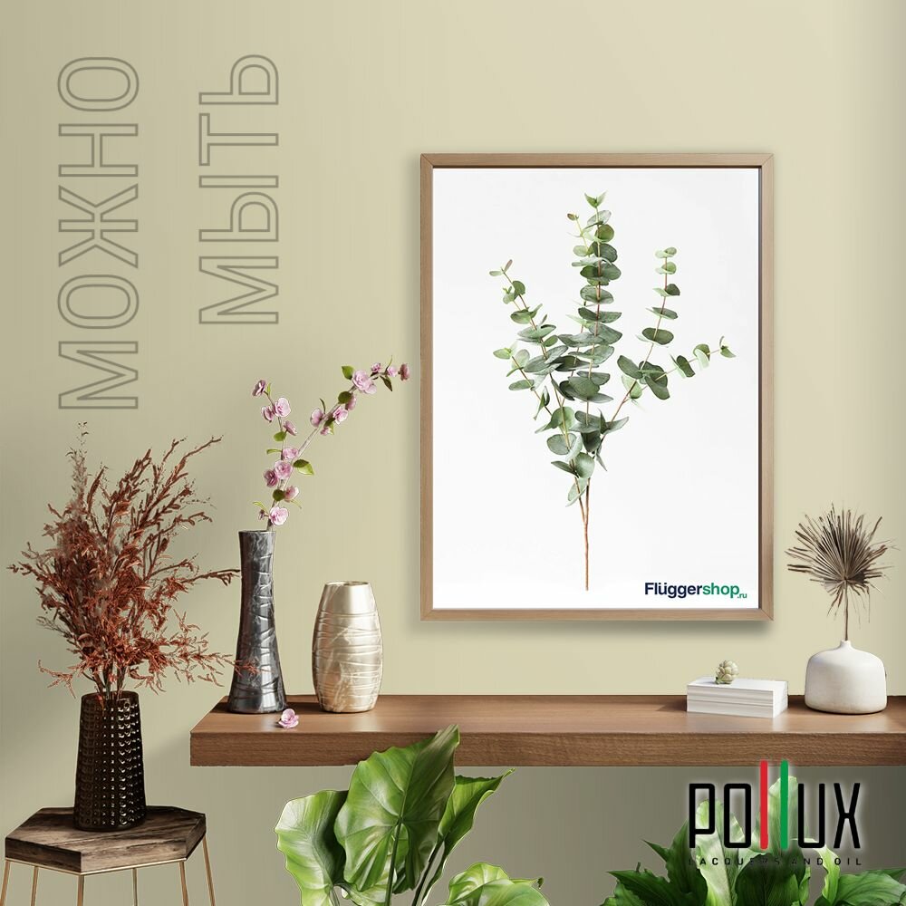 Краска моющаяся интерьерная для стен и потолков, Pollux INTERIOR без запаха, быстросохнущая, акриловая, матовое покрытие, цвет NCS S 8010-G90Y, 1л.