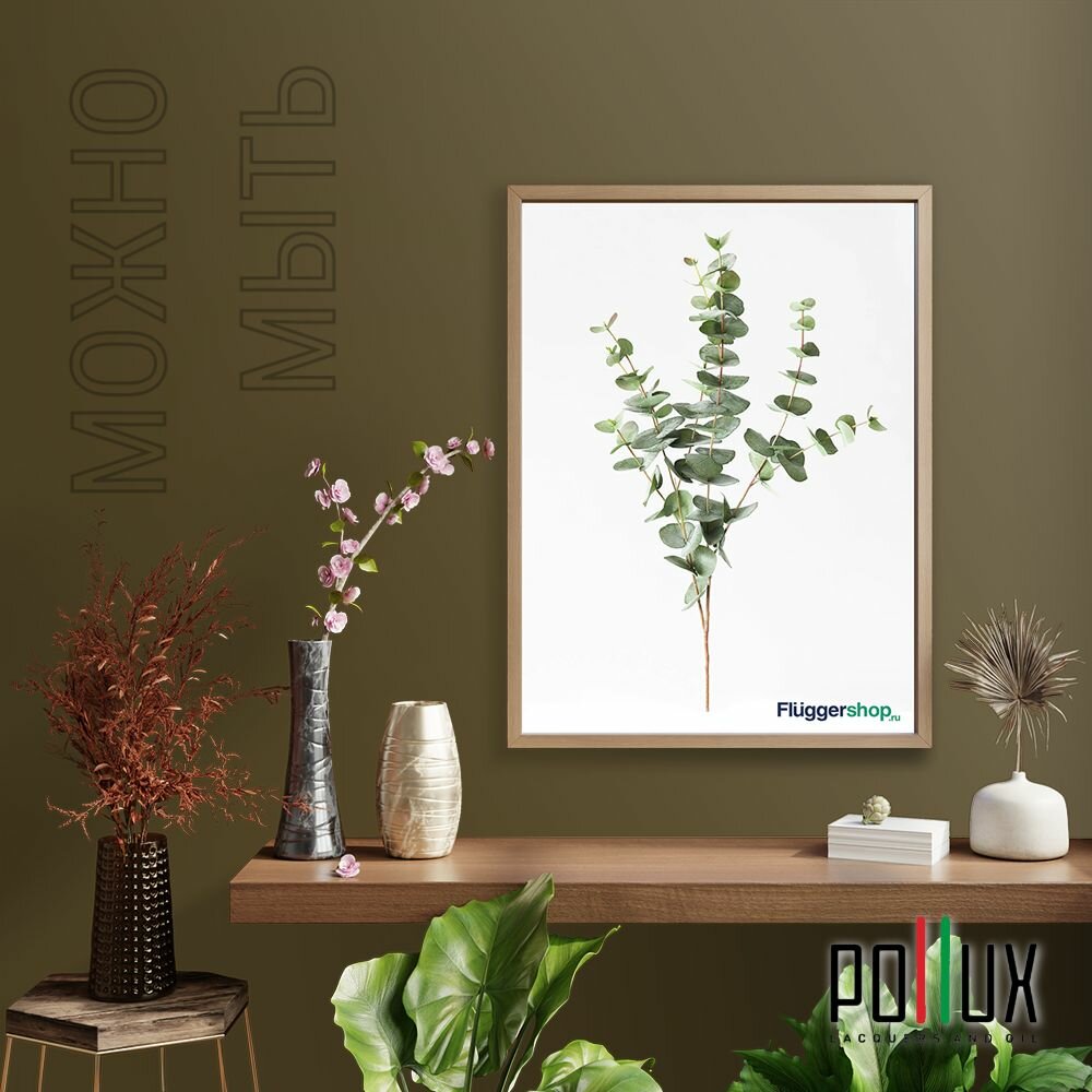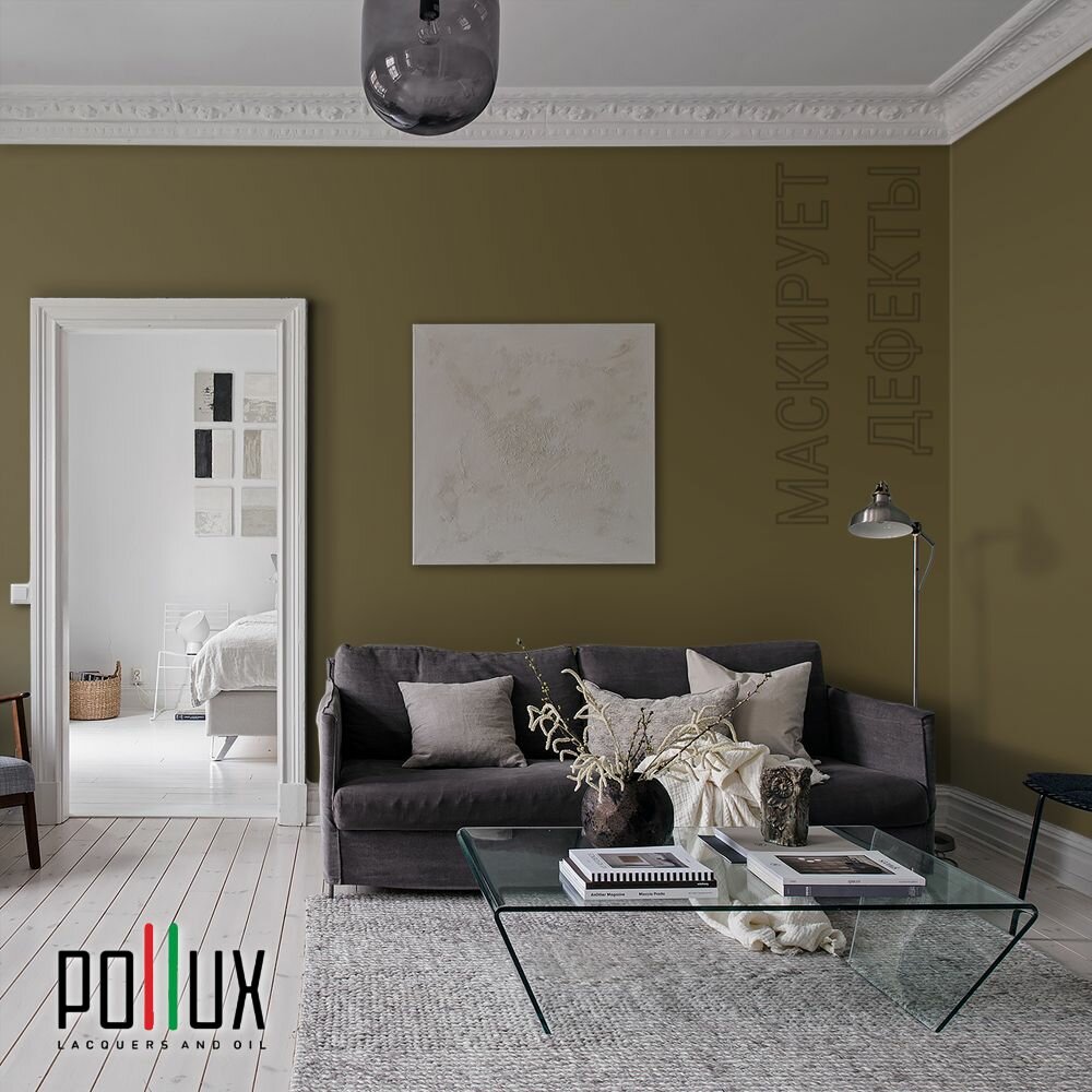 Краска моющаяся интерьерная для стен и потолков, Pollux INTERIOR без запаха, быстросохнущая, акриловая, матовое покрытие, цвет NCS S 8010-G90Y, 1л.