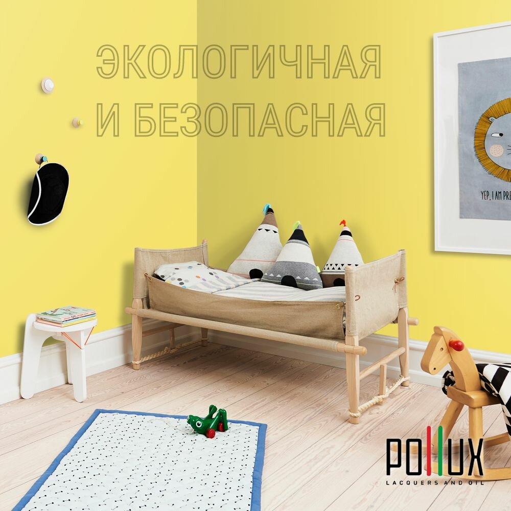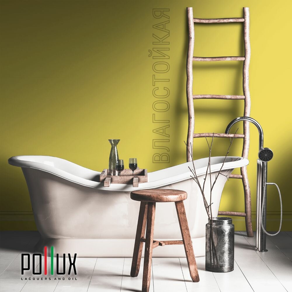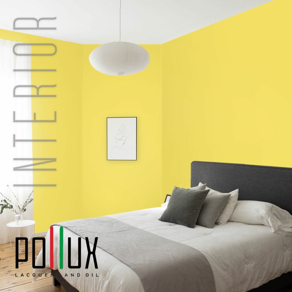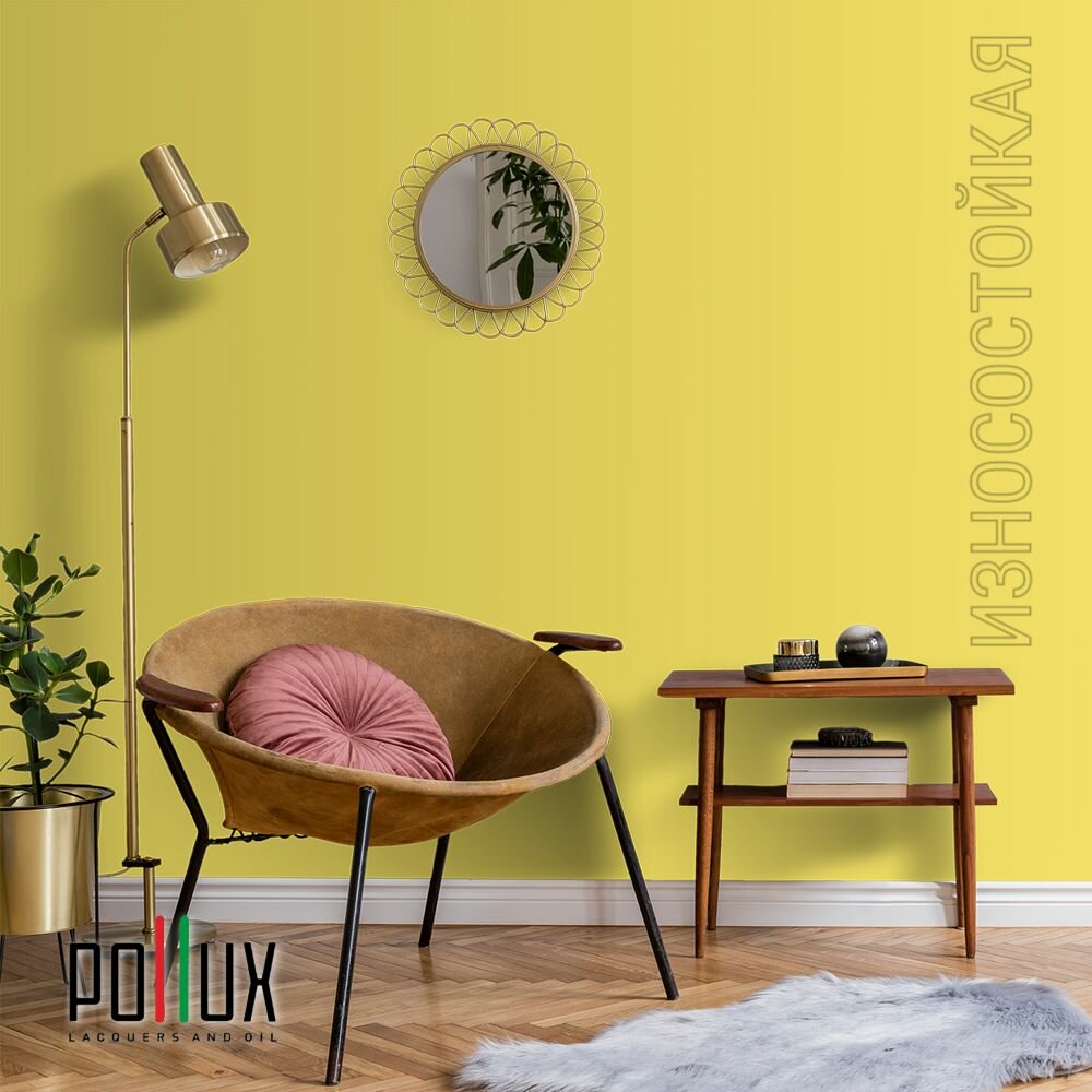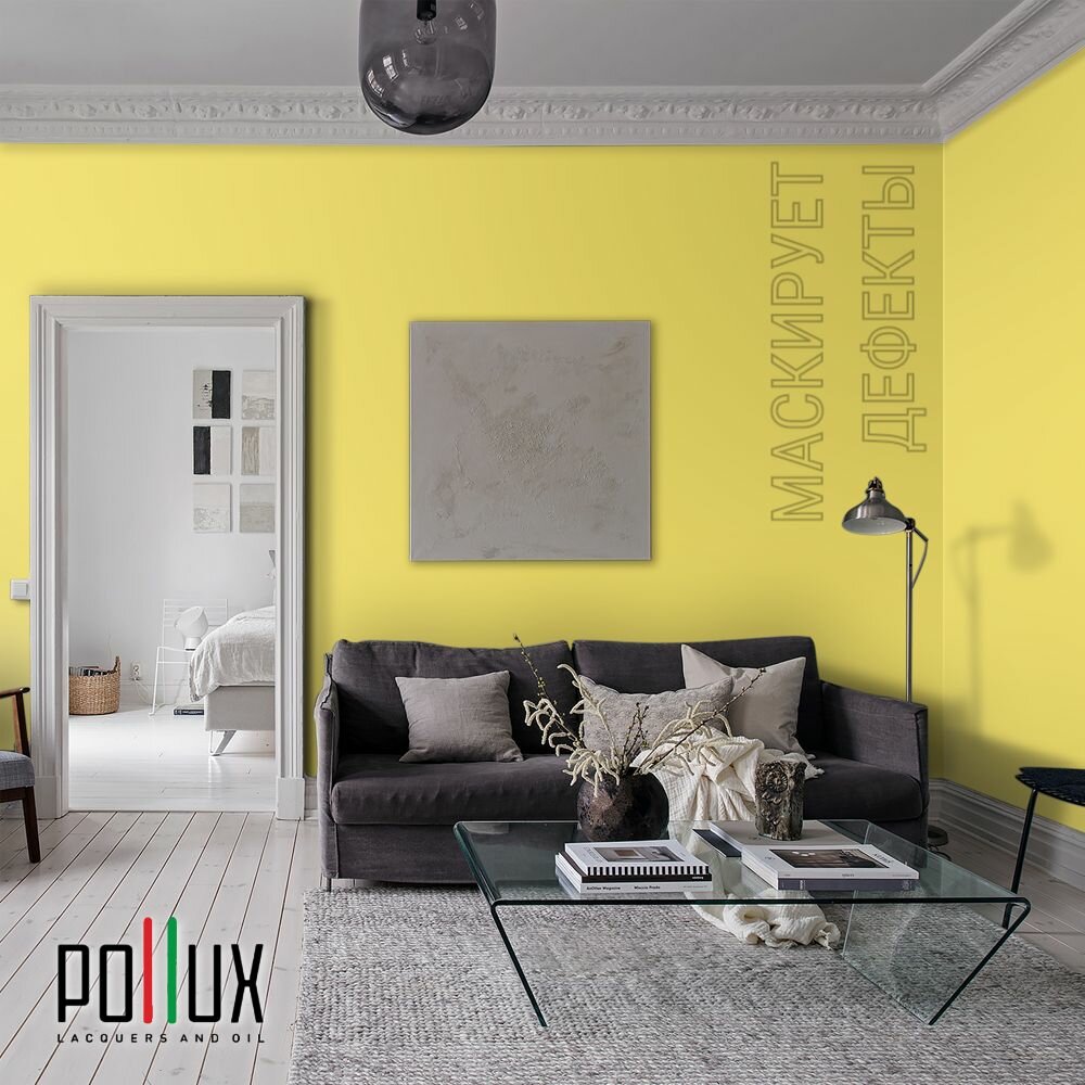 Краска моющаяся интерьерная для стен и потолков, Pollux INTERIOR без запаха, быстросохнущая, акриловая, матовое покрытие, цвет NCS S 1010-G90Y, 1л.