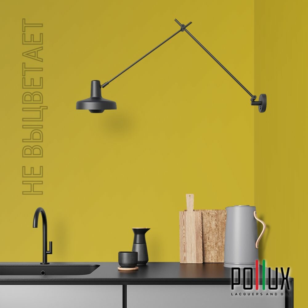 Краска моющаяся интерьерная для стен и потолков, Pollux INTERIOR без запаха, быстросохнущая, акриловая, матовое покрытие, цвет NCS S 0575-G90Y, 1л.