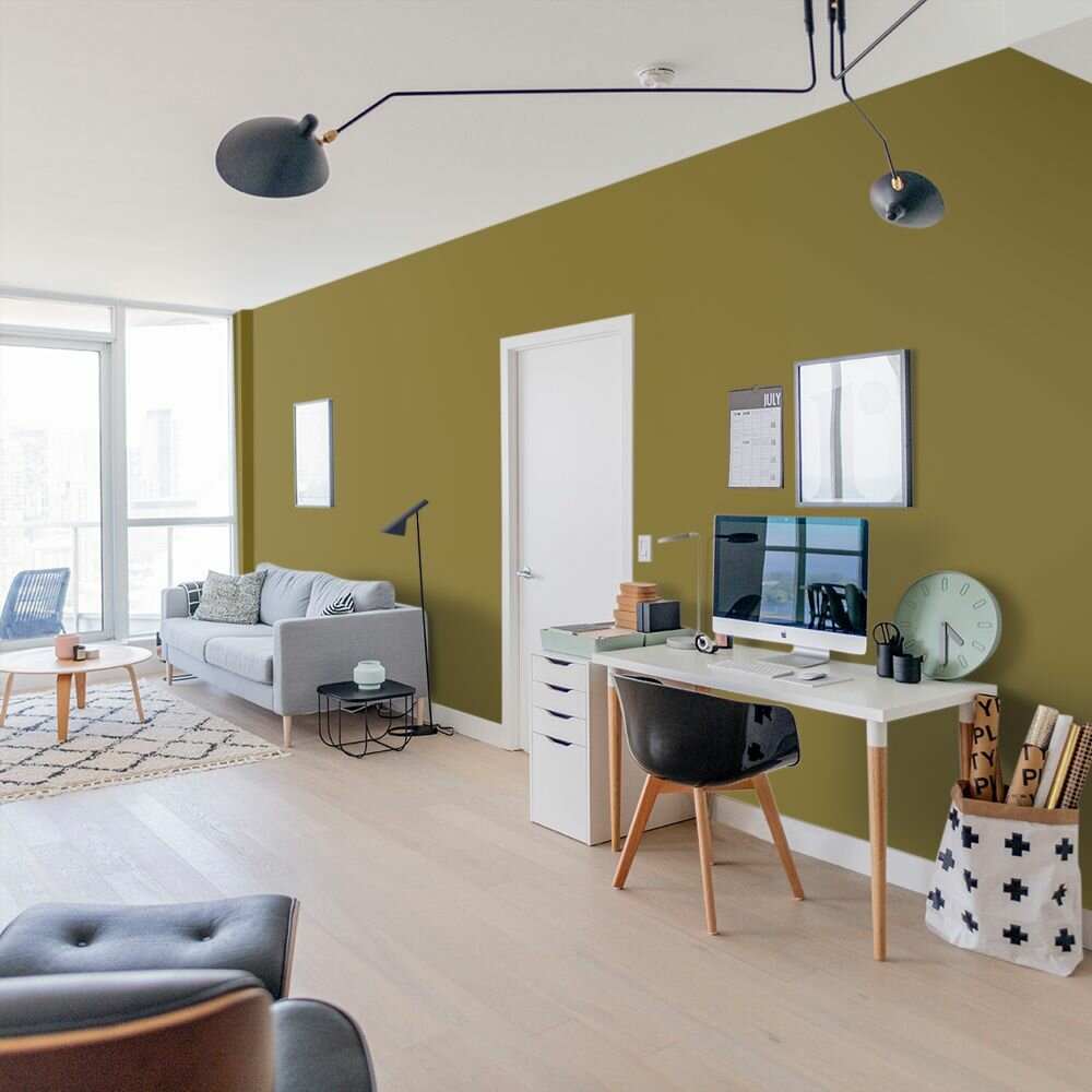 Краска моющаяся интерьерная для стен и потолков, Pollux INTERIOR без запаха, быстросохнущая, акриловая, матовое покрытие, цвет NCS S 3060-G90Y, 1л.