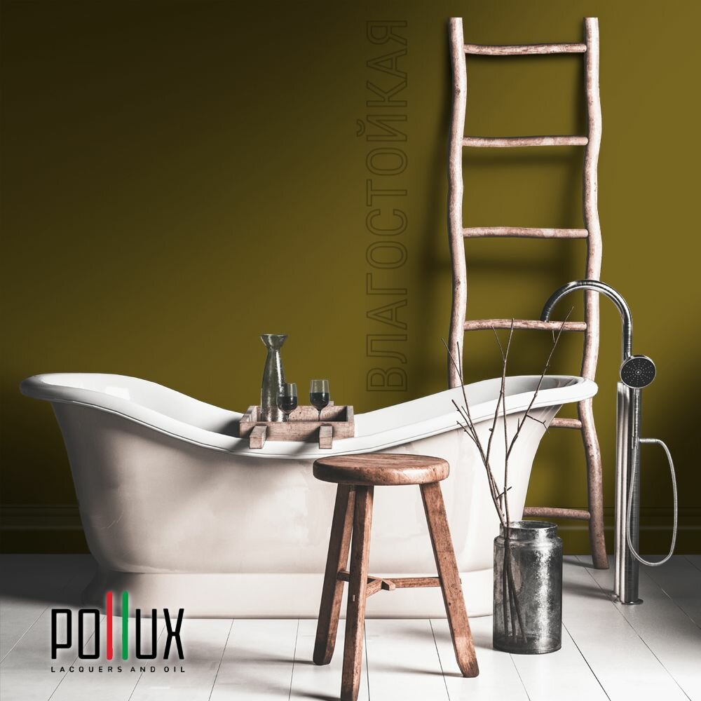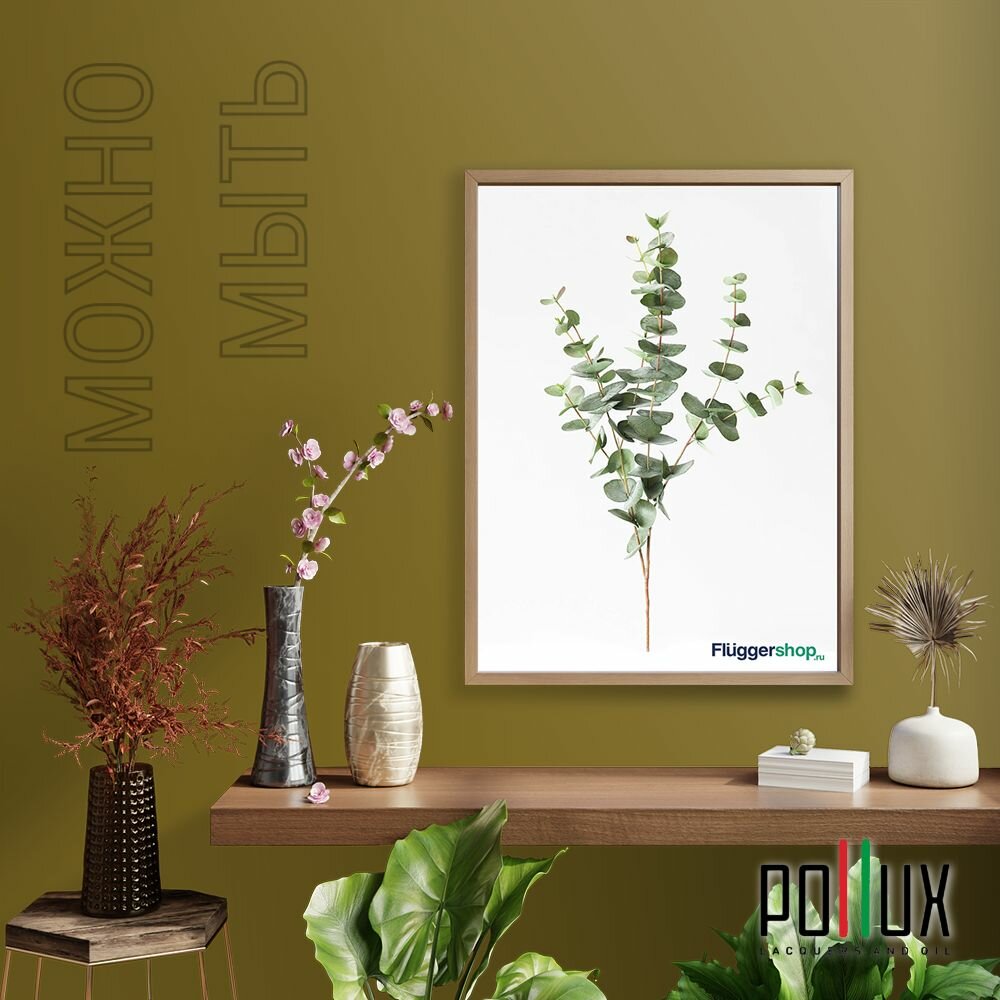 Краска моющаяся интерьерная для стен и потолков, Pollux INTERIOR без запаха, быстросохнущая, акриловая, матовое покрытие, цвет NCS S 8010-G90Y, 1л.