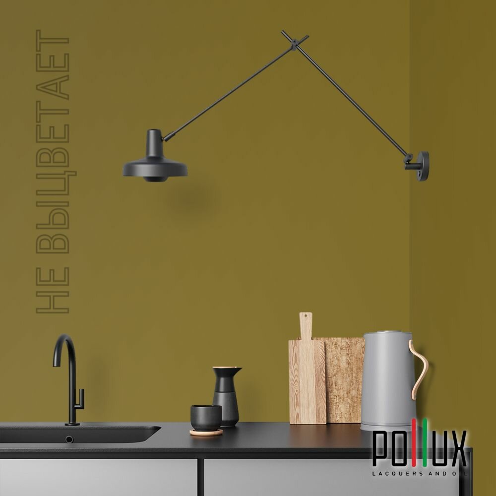 Краска моющаяся интерьерная для стен и потолков, Pollux INTERIOR без запаха, быстросохнущая, акриловая, матовое покрытие, цвет NCS S 6020-G90Y, 1л.