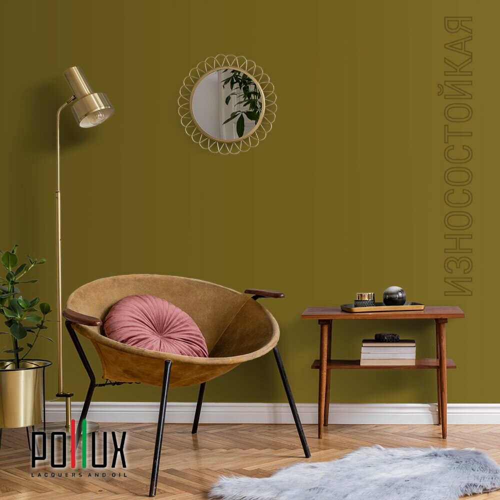 Краска моющаяся интерьерная для стен и потолков, Pollux INTERIOR без запаха, быстросохнущая, акриловая, матовое покрытие, цвет NCS S 3030-G90Y, 1л.